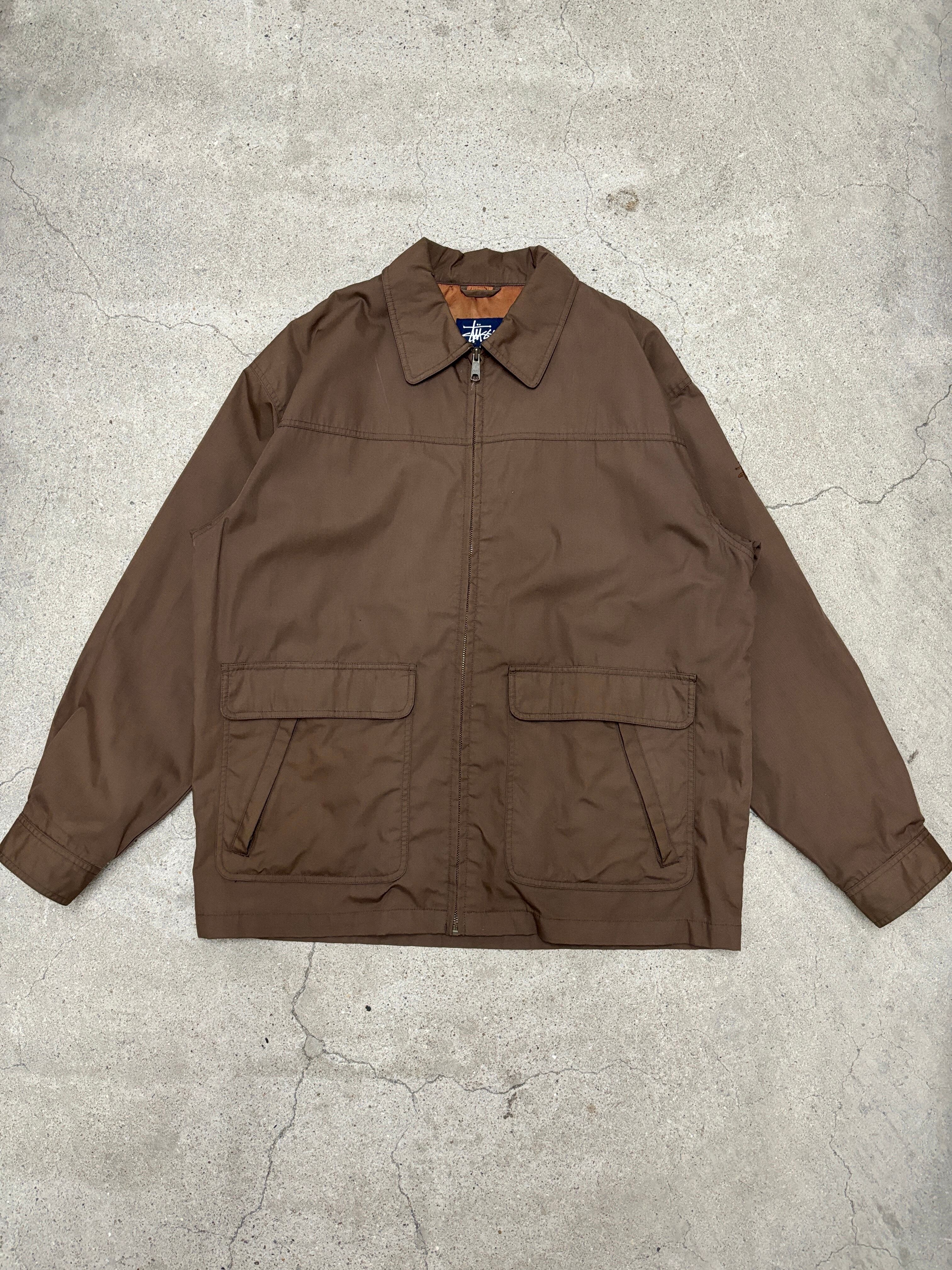90~00s OLD STUSSY/Nylon Jacket/紺タグ/L/ナイロンジャケット/刺繍ロゴ/ストックロゴ/ブラウン/ステューシー/オールドステューシー/古着/アーカイブ
