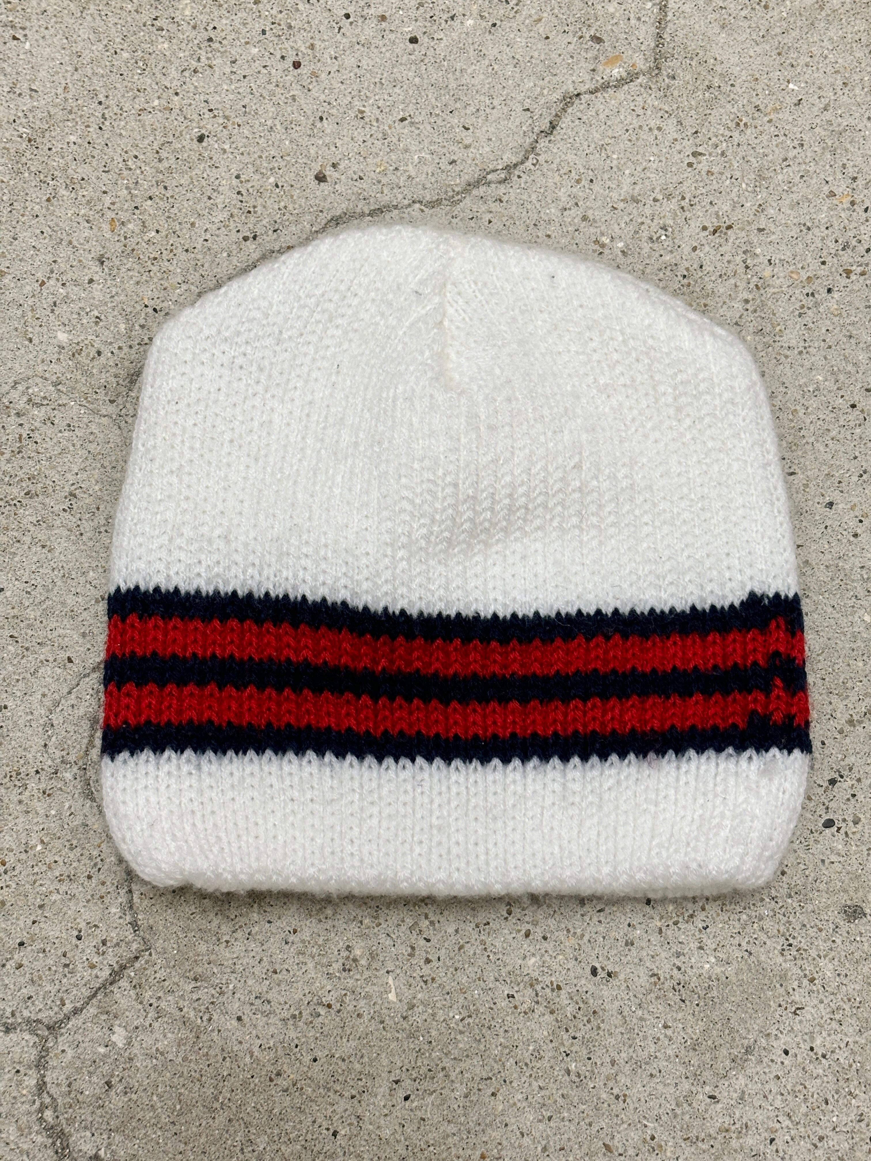 90~00s VANS/Logo Embroidery Beanie/Free/刺繍ロゴ/旧ロゴ/ビーニ-/ニット帽/ホワイト/ボーダ-/バンズ