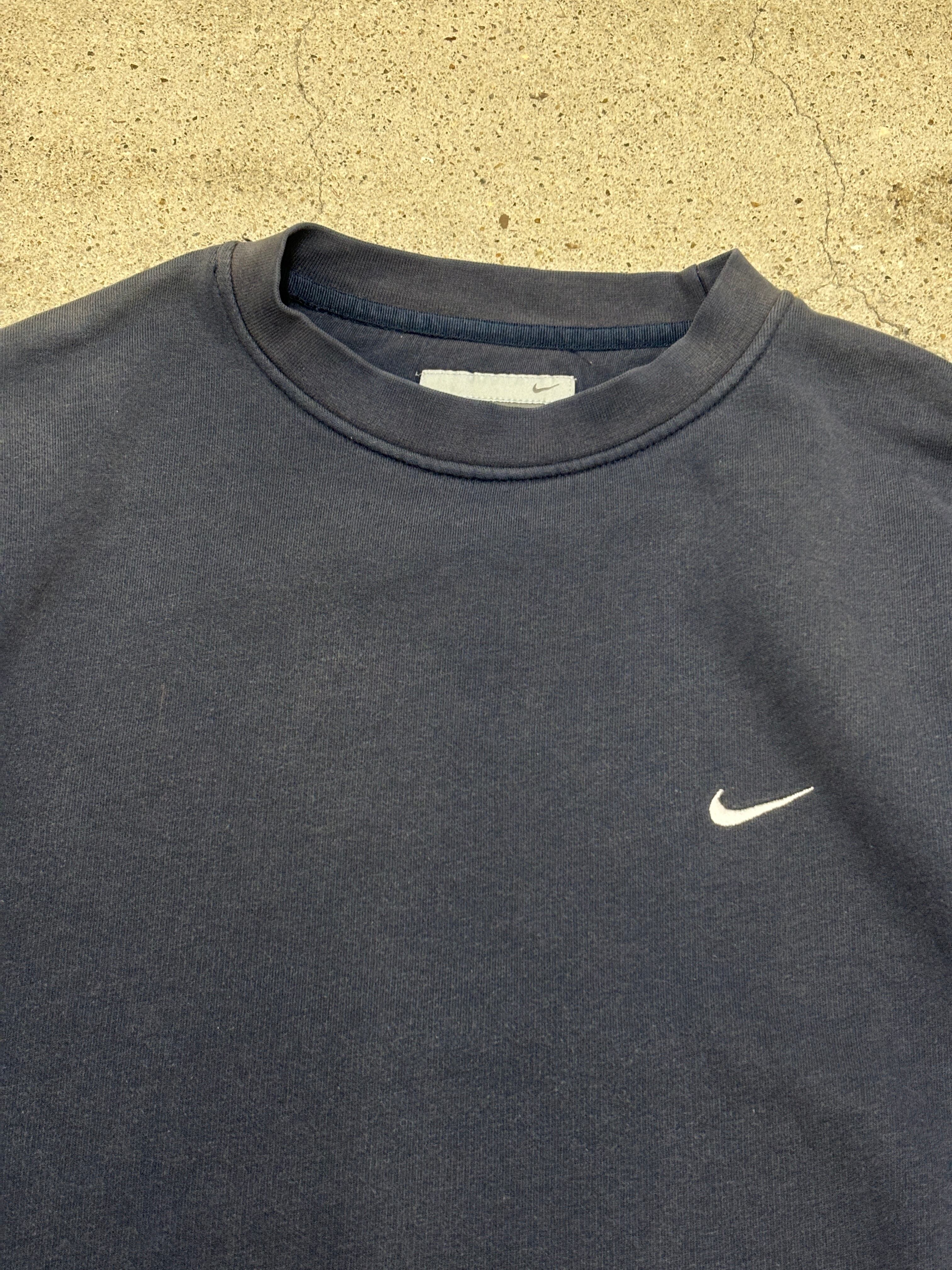00s Euro NIKE/Swoosh Logo Sweat/Turkey製/M/スウォッシュロゴ/スウェット/刺繍ロゴ/ネイビ-/ナイキ