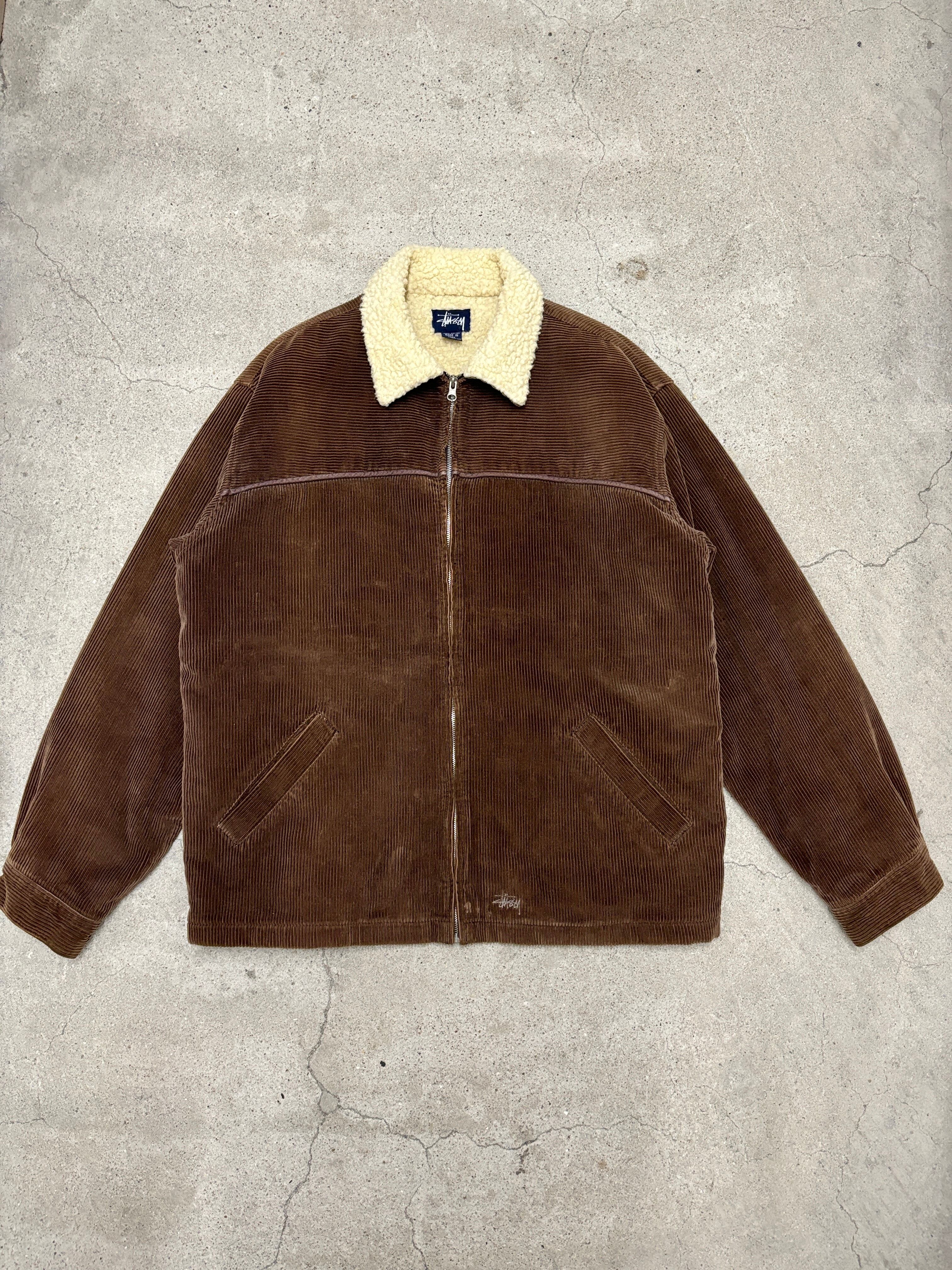 90~00s OLD STUSSY/Boa Corduroy Jacket/紺タグ/L/ボアコーデュロイジャケット/刺繍ロゴ/ストックロゴ/ブラウン/ステューシー/オールドステューシー/古着/ア―カイブ