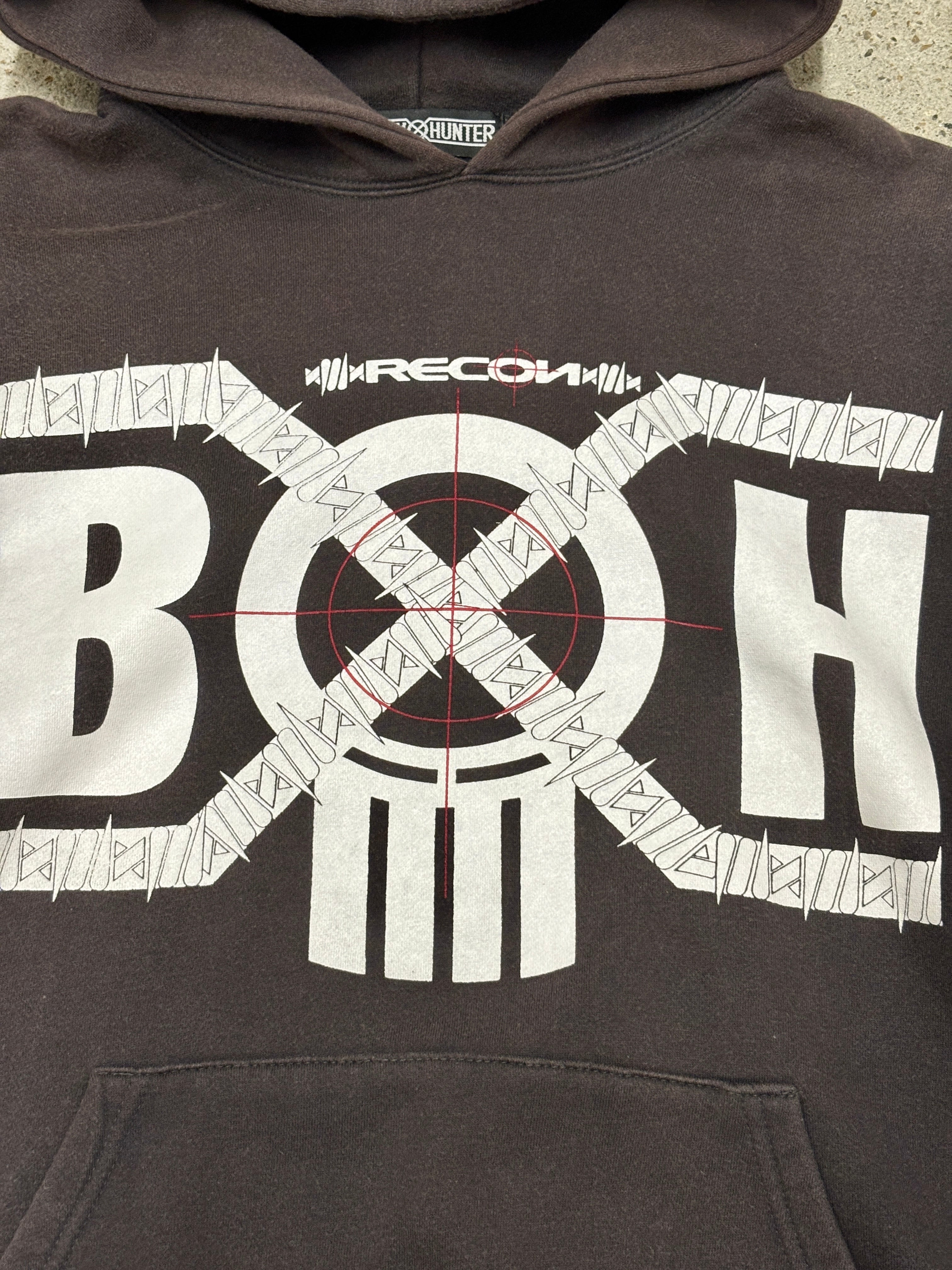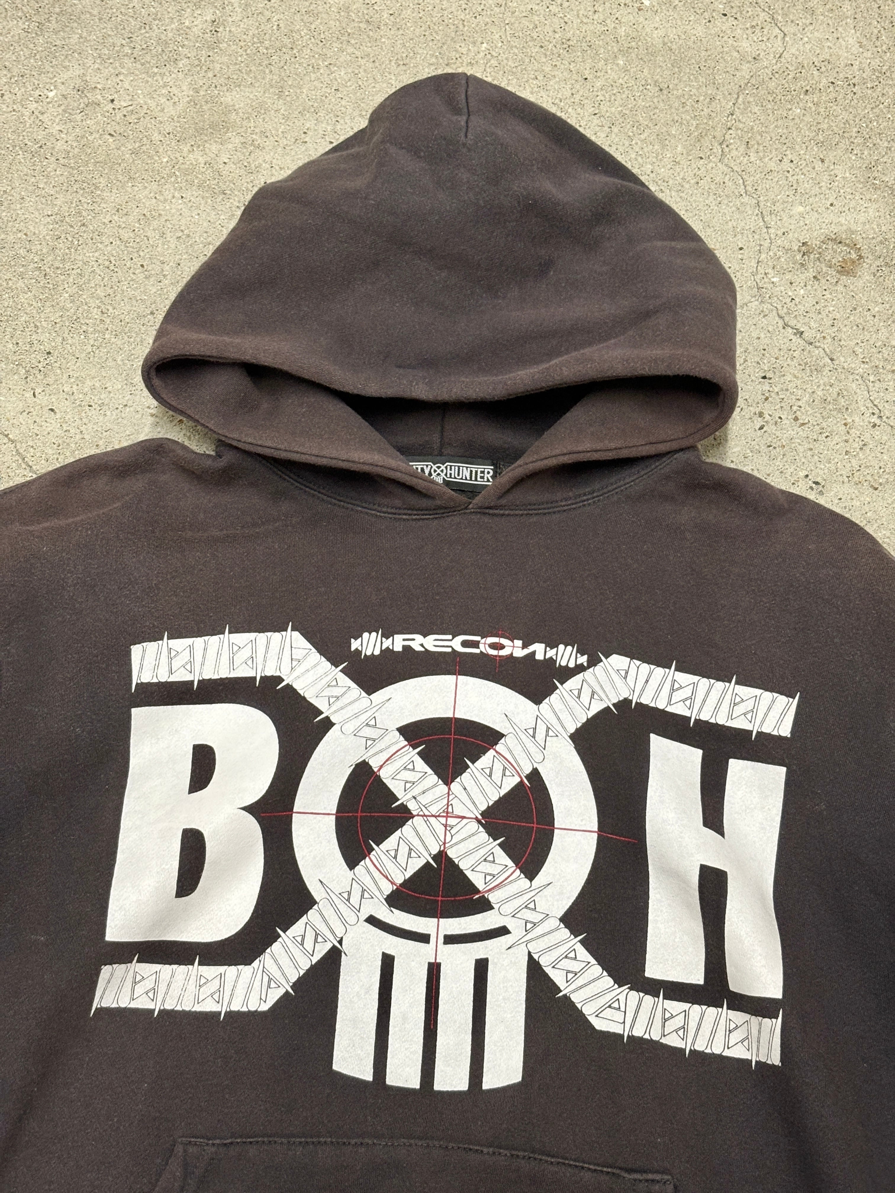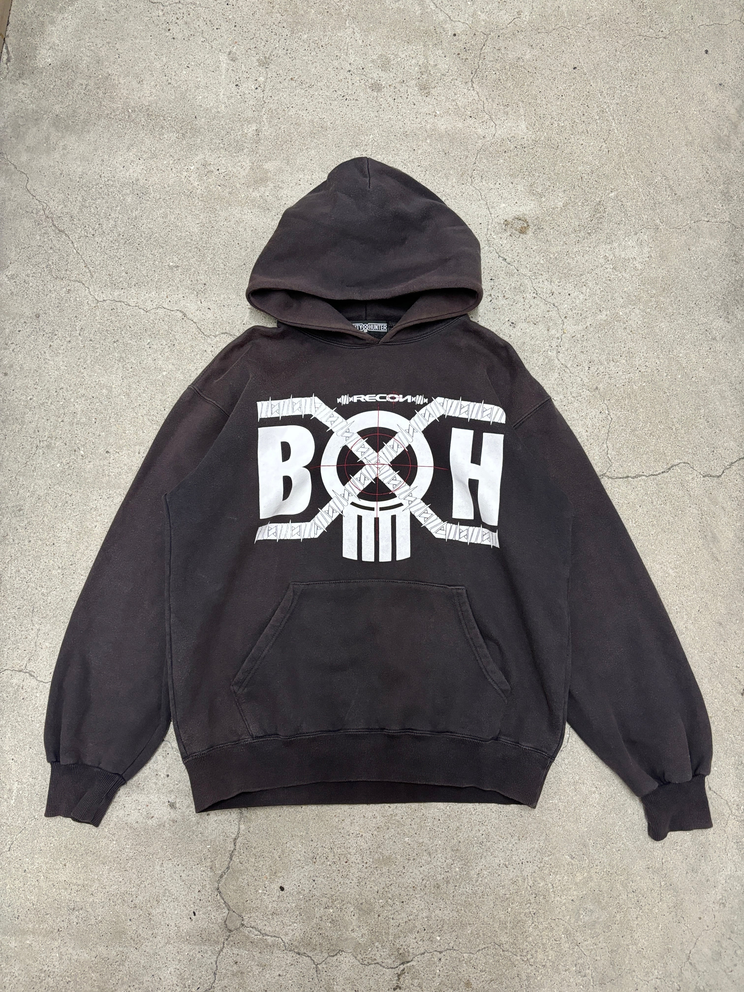 00s BOUNTY HUNTER × RECON/Logo print Hoodie/L~XL相当/ロゴプリントフーディ-/ブラック/リーコンコラボ/BxH/バウンティーハンター/裏原/古着/ア―カイブ