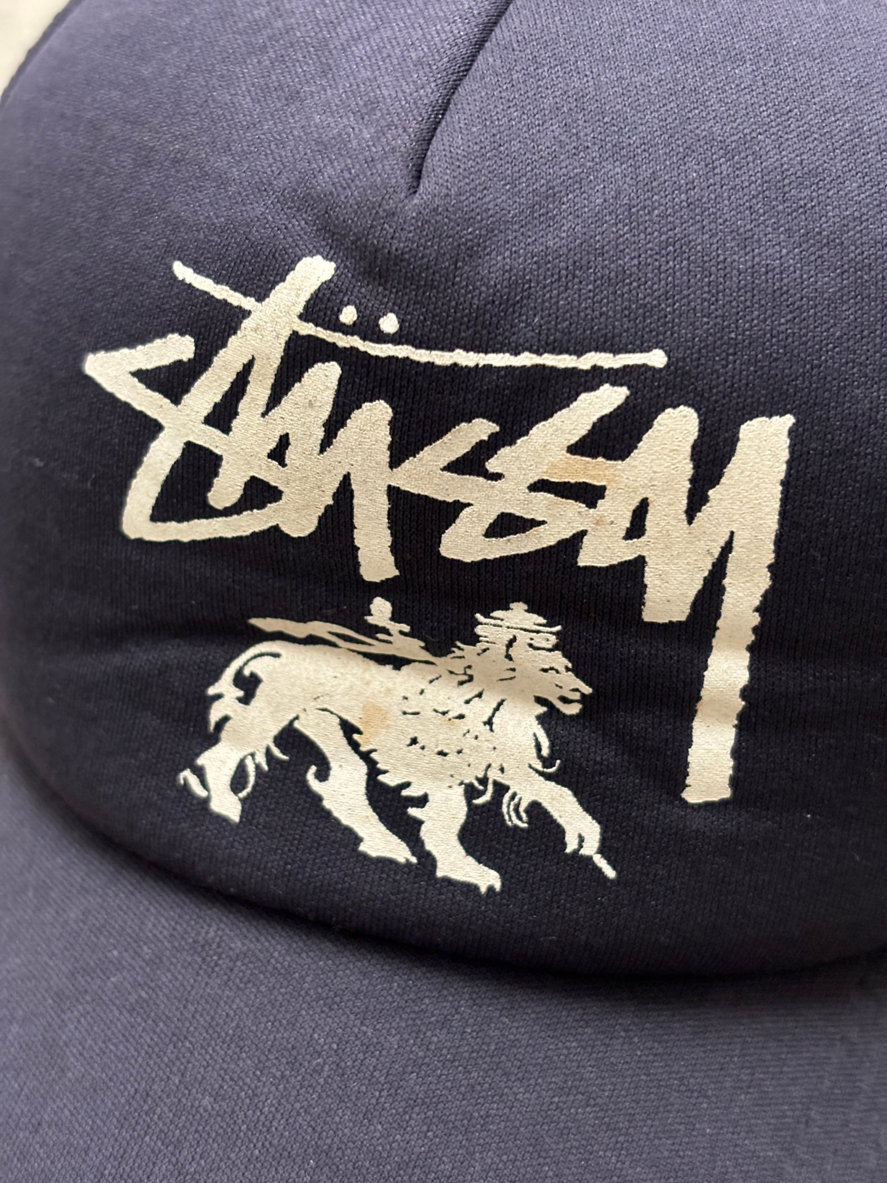 00s OLD STUSSY/Rasta Lion print Mesh Cap/Free/ラスタライオン/ロゴプリント/メッシュキャップ/ストックロゴ/ブラック/ステューシー/オールドステューシー/帽子/ア-カイブ