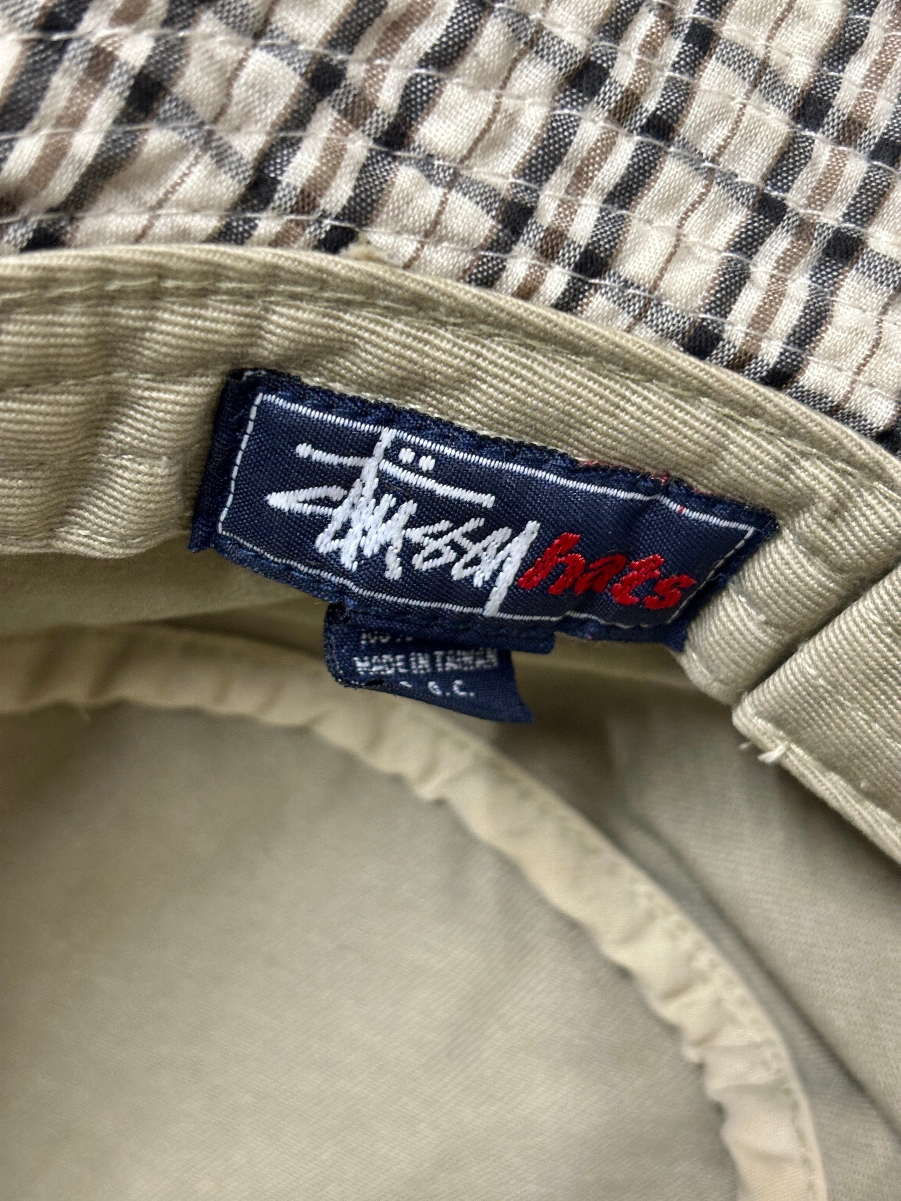 90~00s OLD STUSSY/Stock Logo Bucket Hat/台湾製/紺タグ/L-XL/ストックロゴ/刺繍ロゴ/バケットハット/ベ-ジュ/ステューシー/オ-ルドステューシー/帽子/古着/ア-カイブ