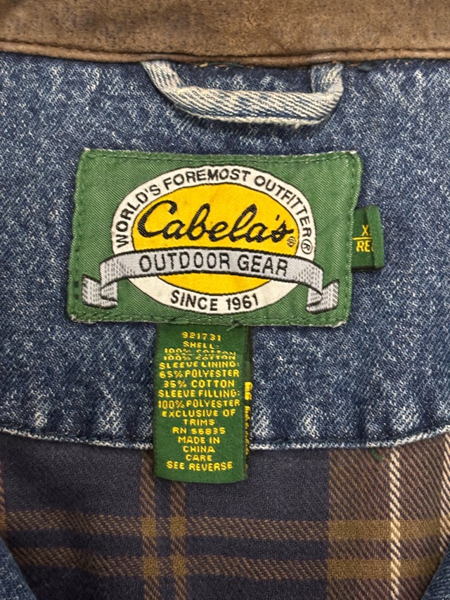 90~00s Cabela`s/Denim Jacket/XL/デニムジャケット/Gジャン/トラッカ-ジャケット/襟レザ-/ライナ-付き/インディゴ/カベラス/アメカジ/古着