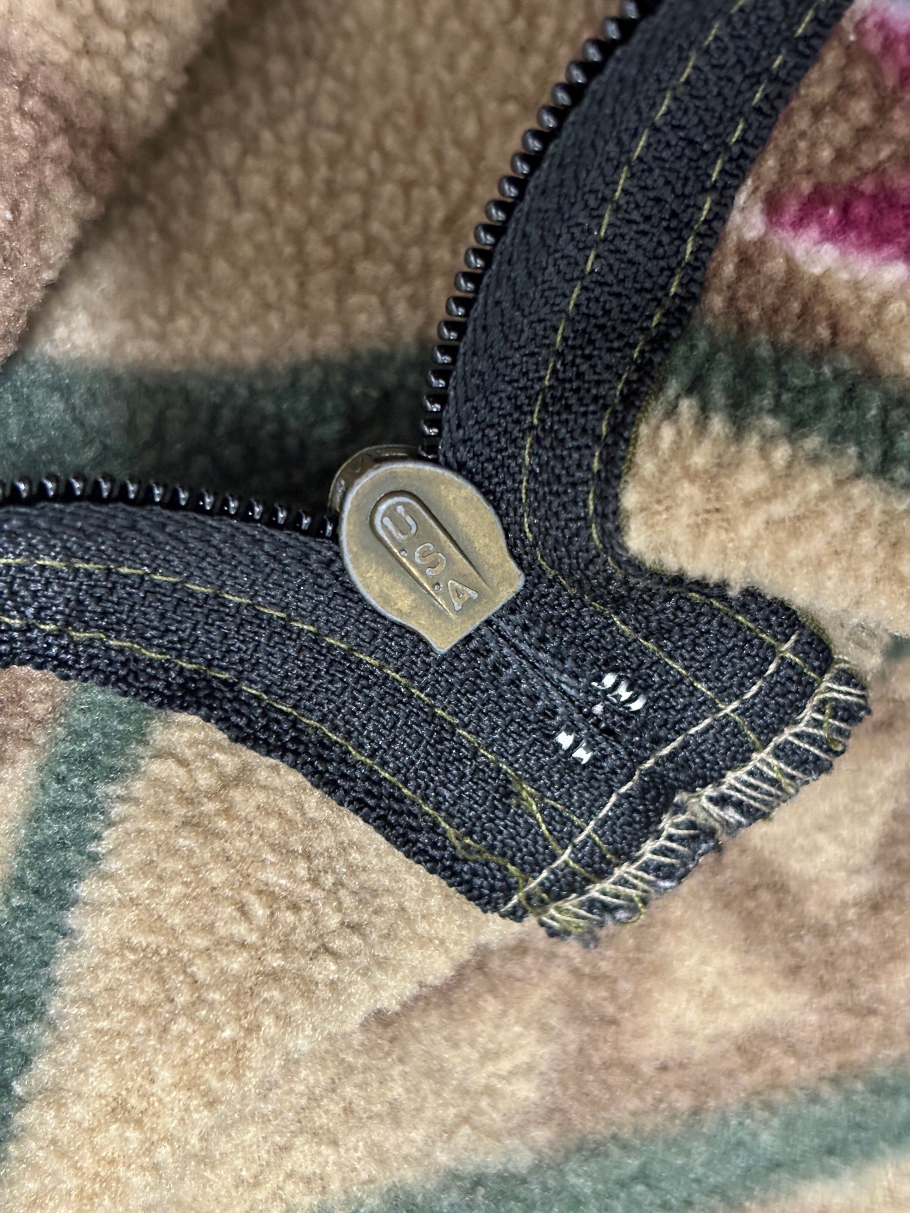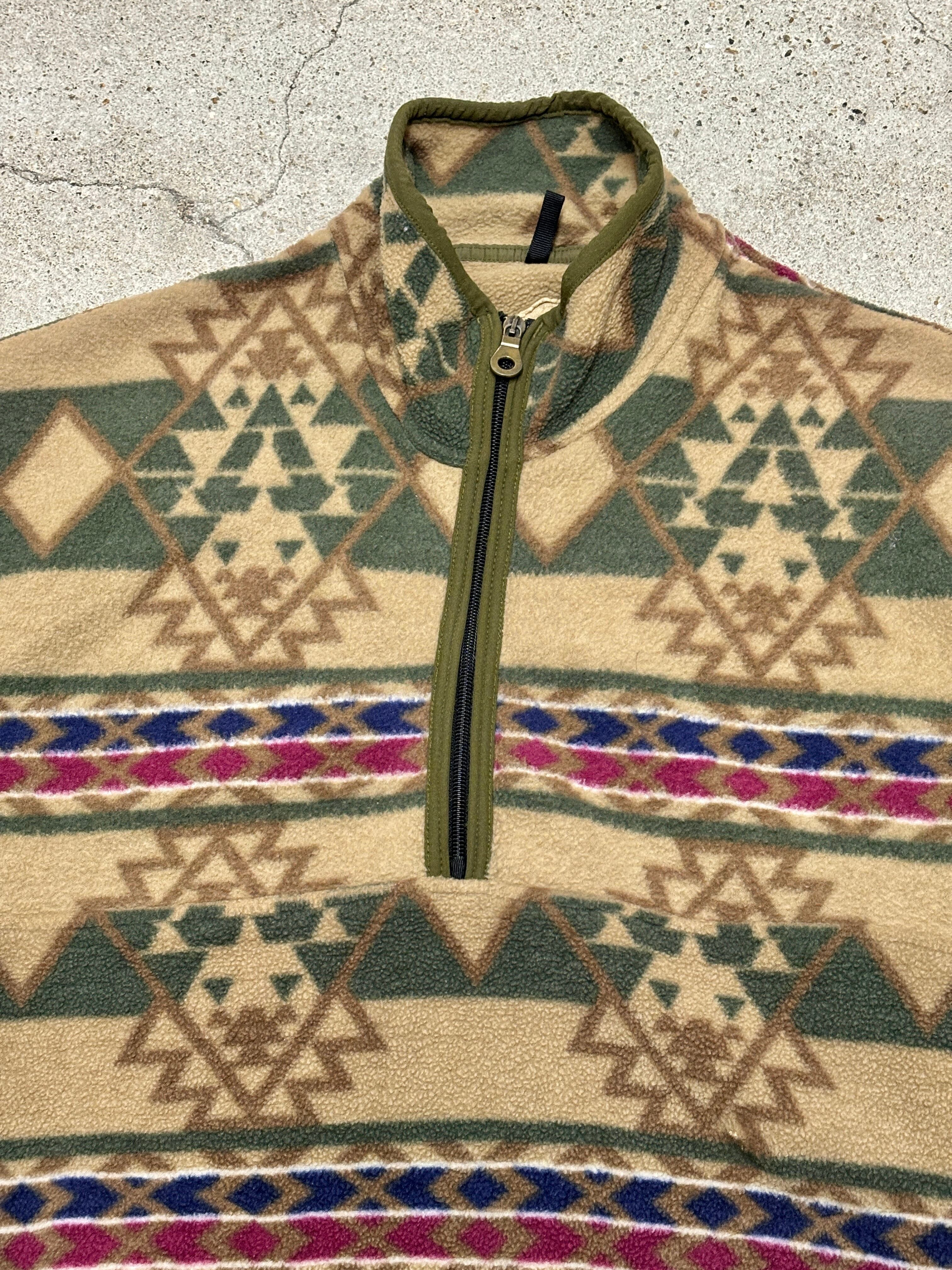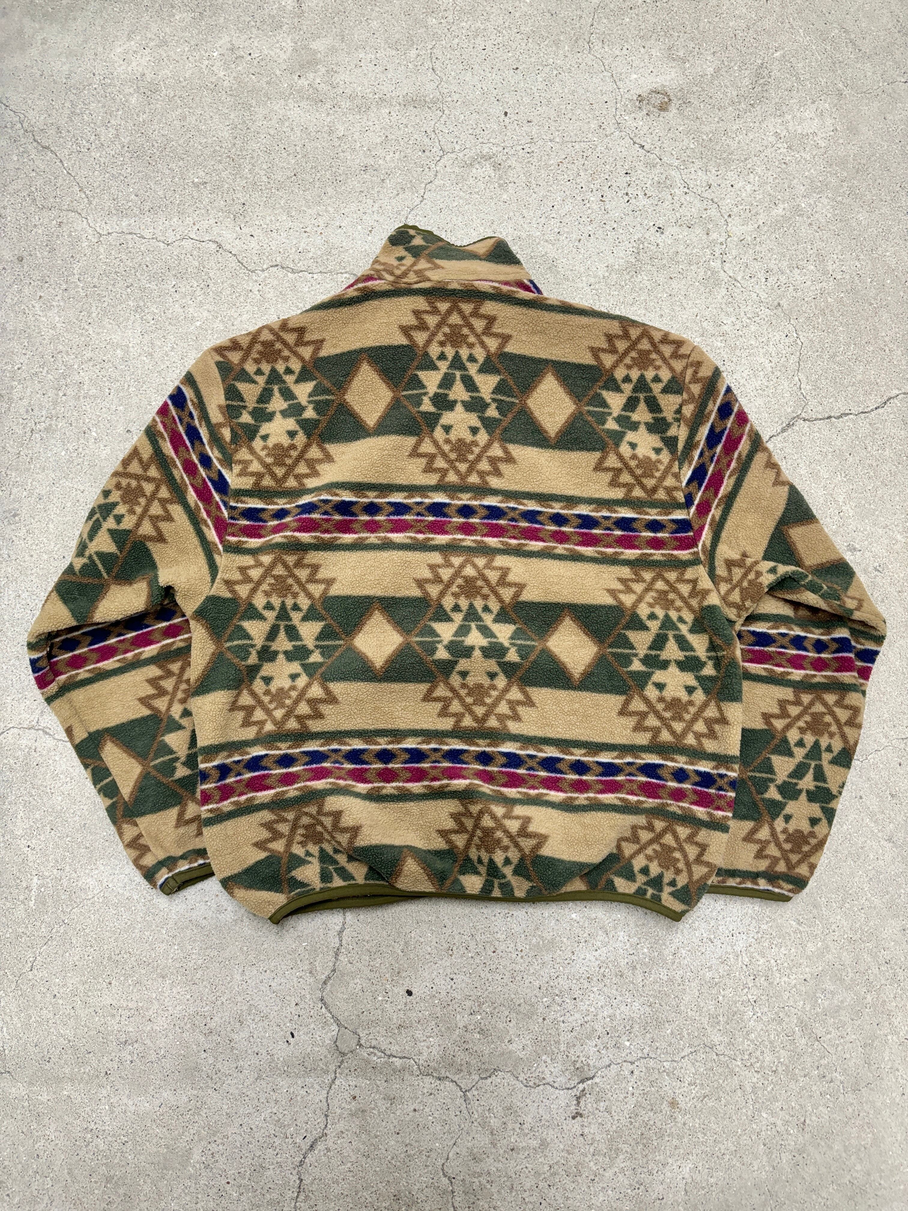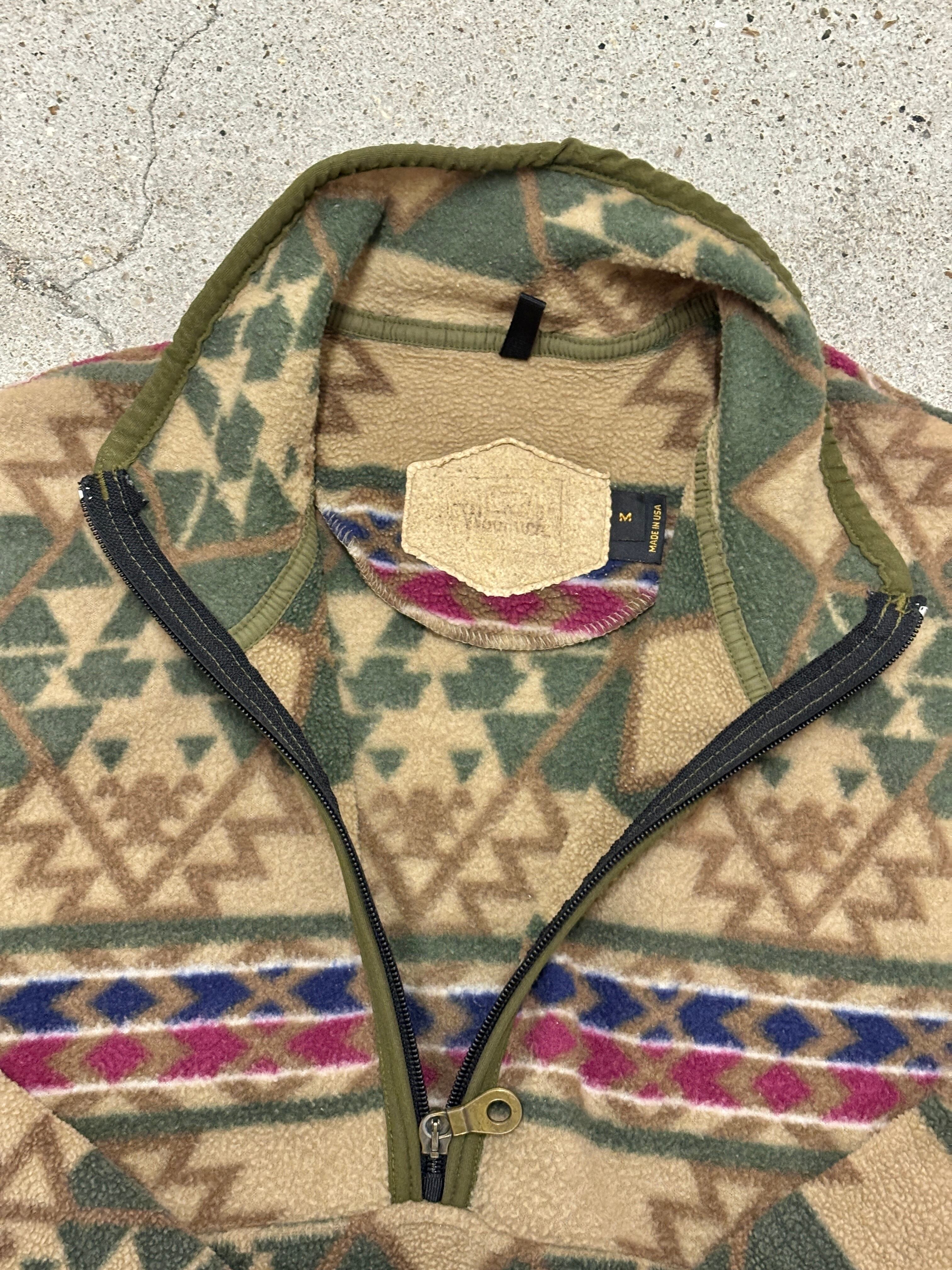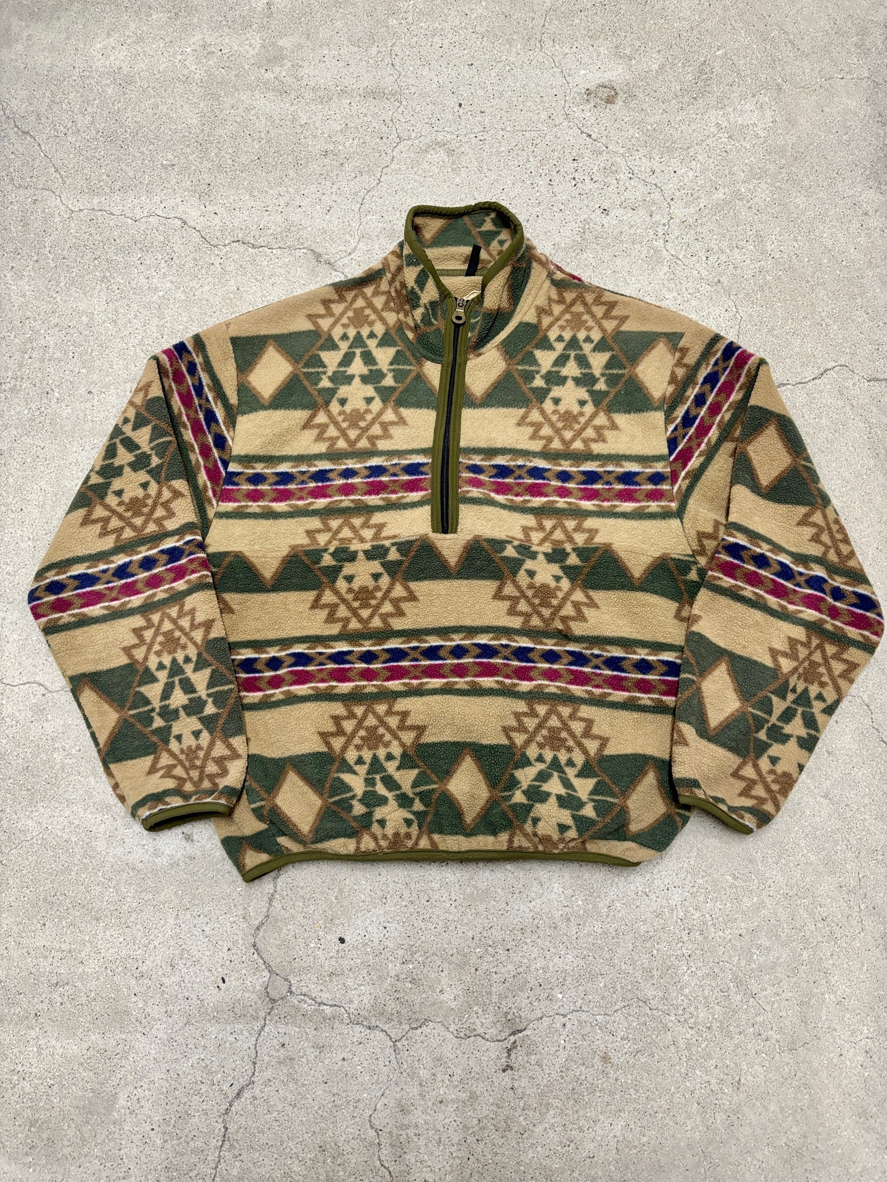 90s WOOLRICH/Half zip Fleece Jacket/USA製/M/ネイティブ柄/ハ-フジップフリ-スジャケット/ベージュ/総柄/ウ-ルリッチ/OUTDOOR/アウトドア/アメカジ/古着