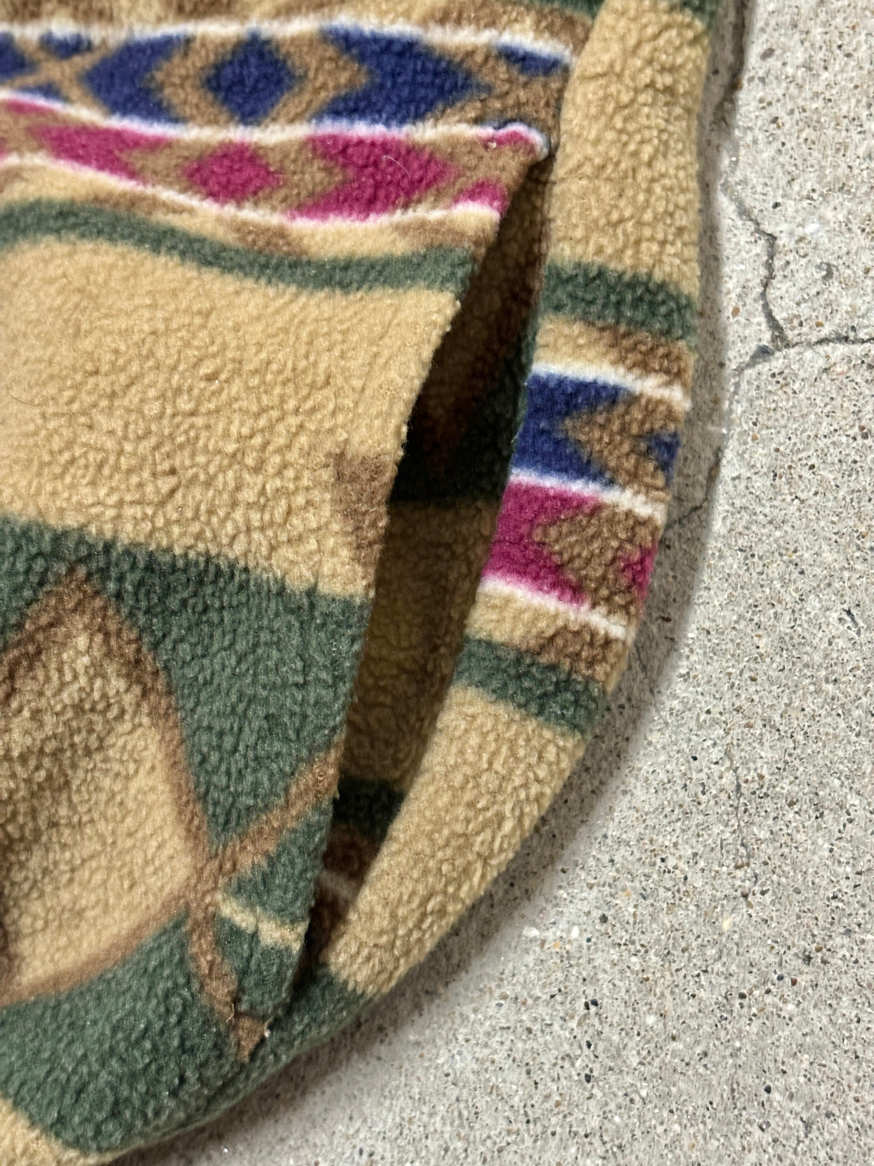 90s WOOLRICH/Half zip Fleece Jacket/USA製/M/ネイティブ柄/ハ-フジップフリ-スジャケット/ベージュ/総柄/ウ-ルリッチ