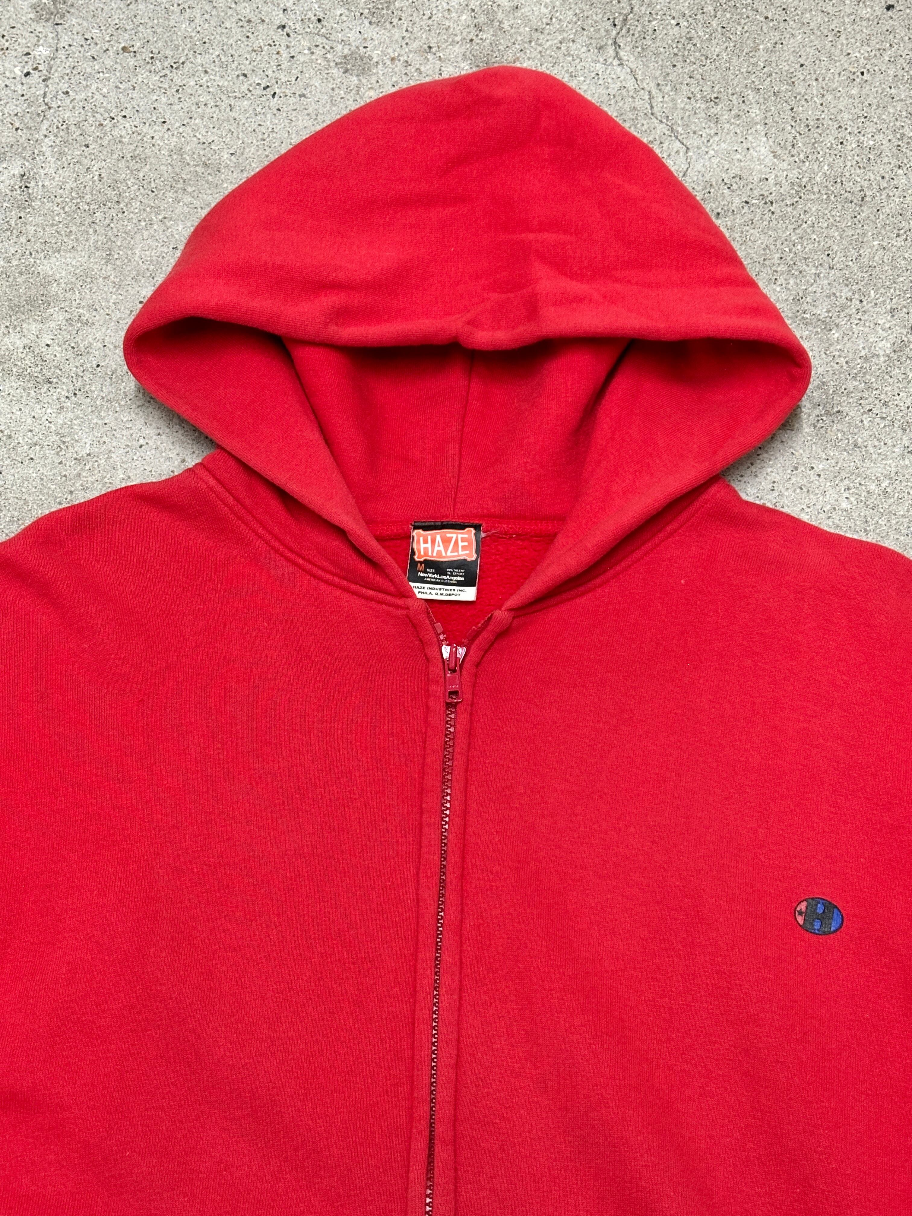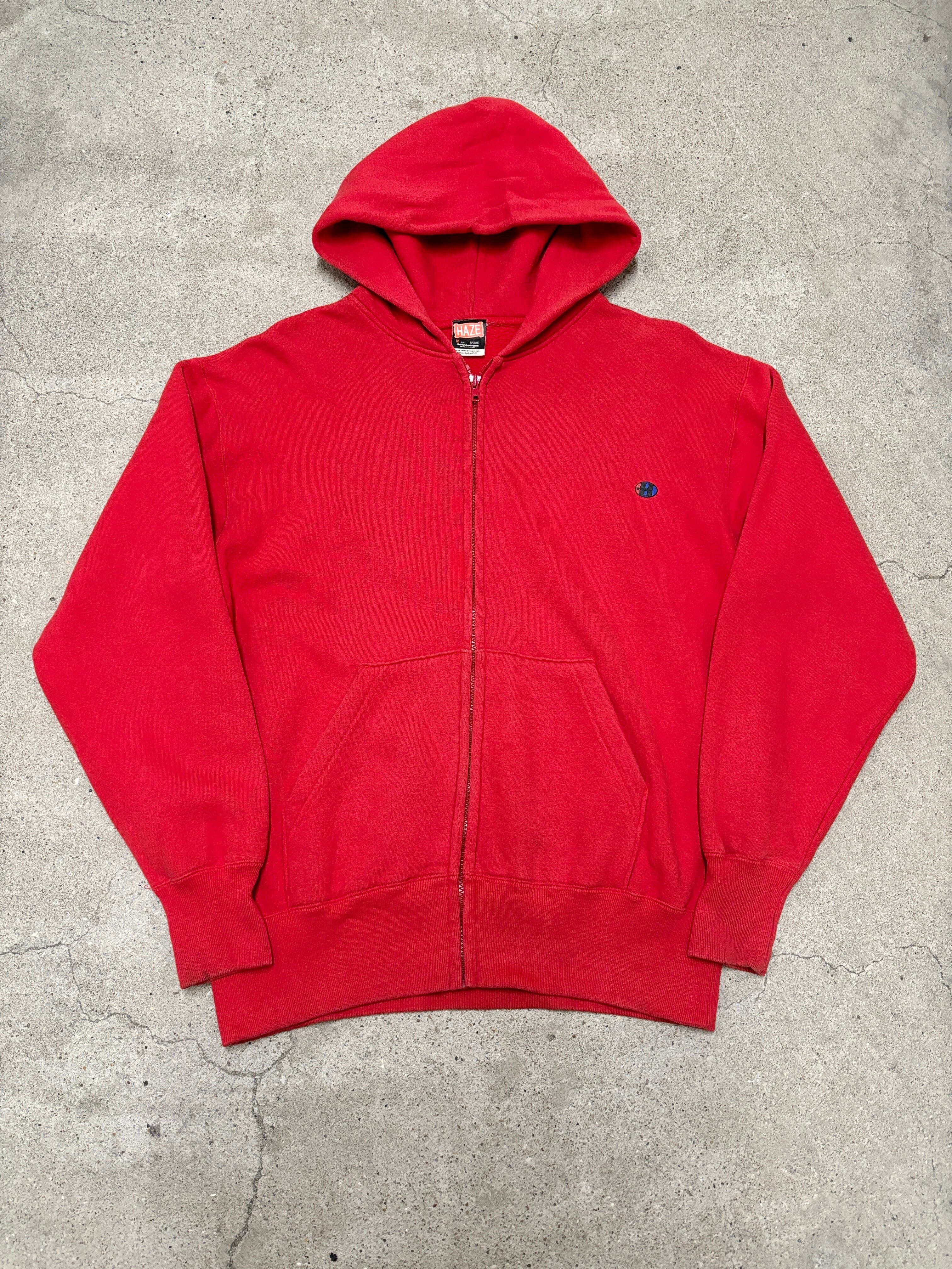 00s ERIC HAZE/Logo print zip Hoodie/M/ロゴプリントジップパ-カ-/フ-ディ-/レッド/エリックヘイズ/裏原/古着/ア-カイブ