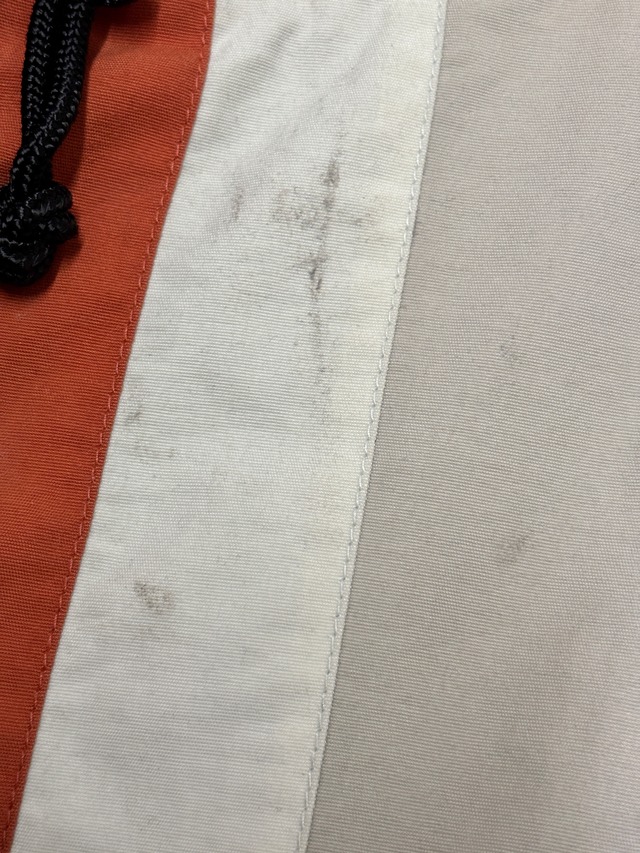 中古、古着特有の着用感があり、左袖、ポケット周辺に汚れがあります。