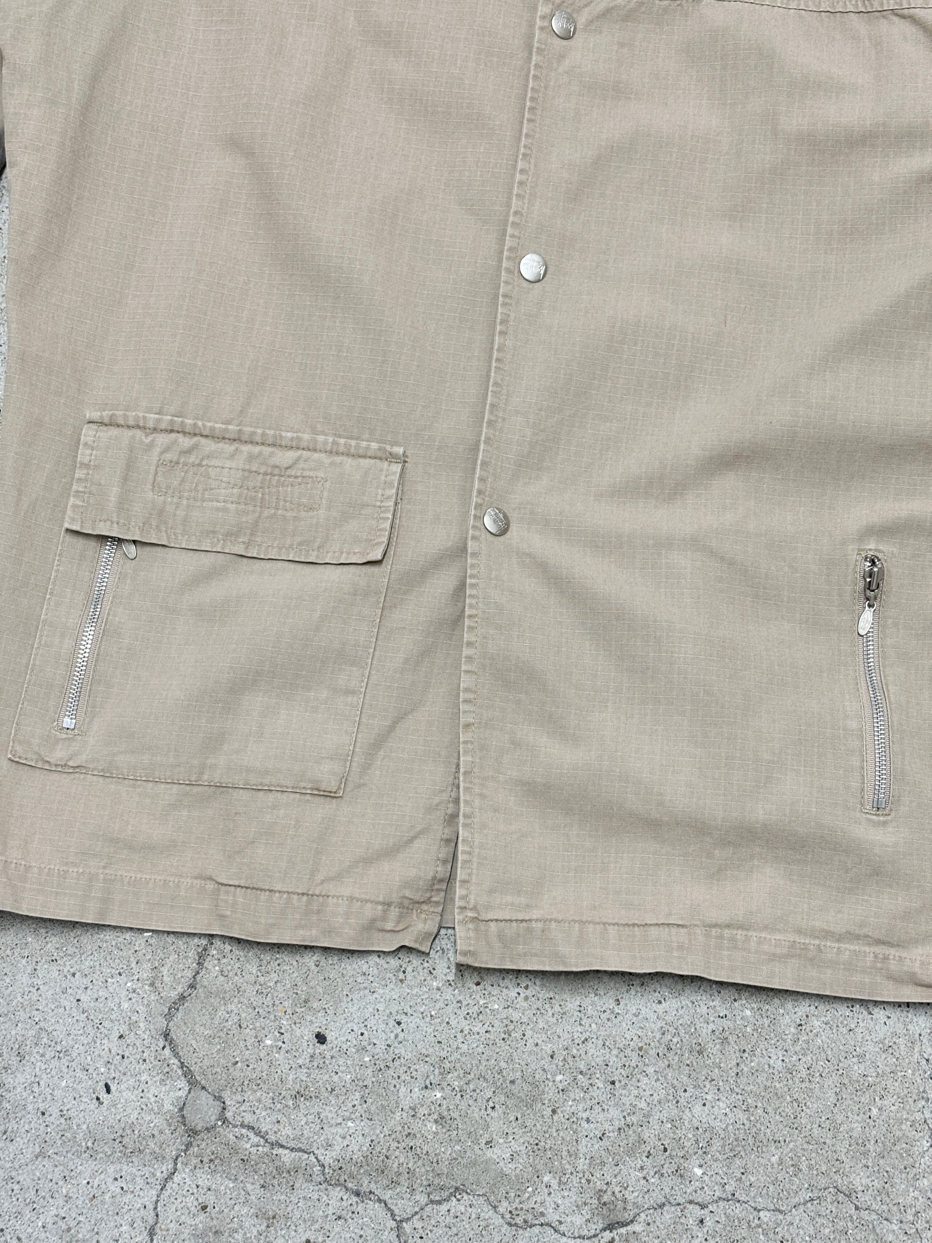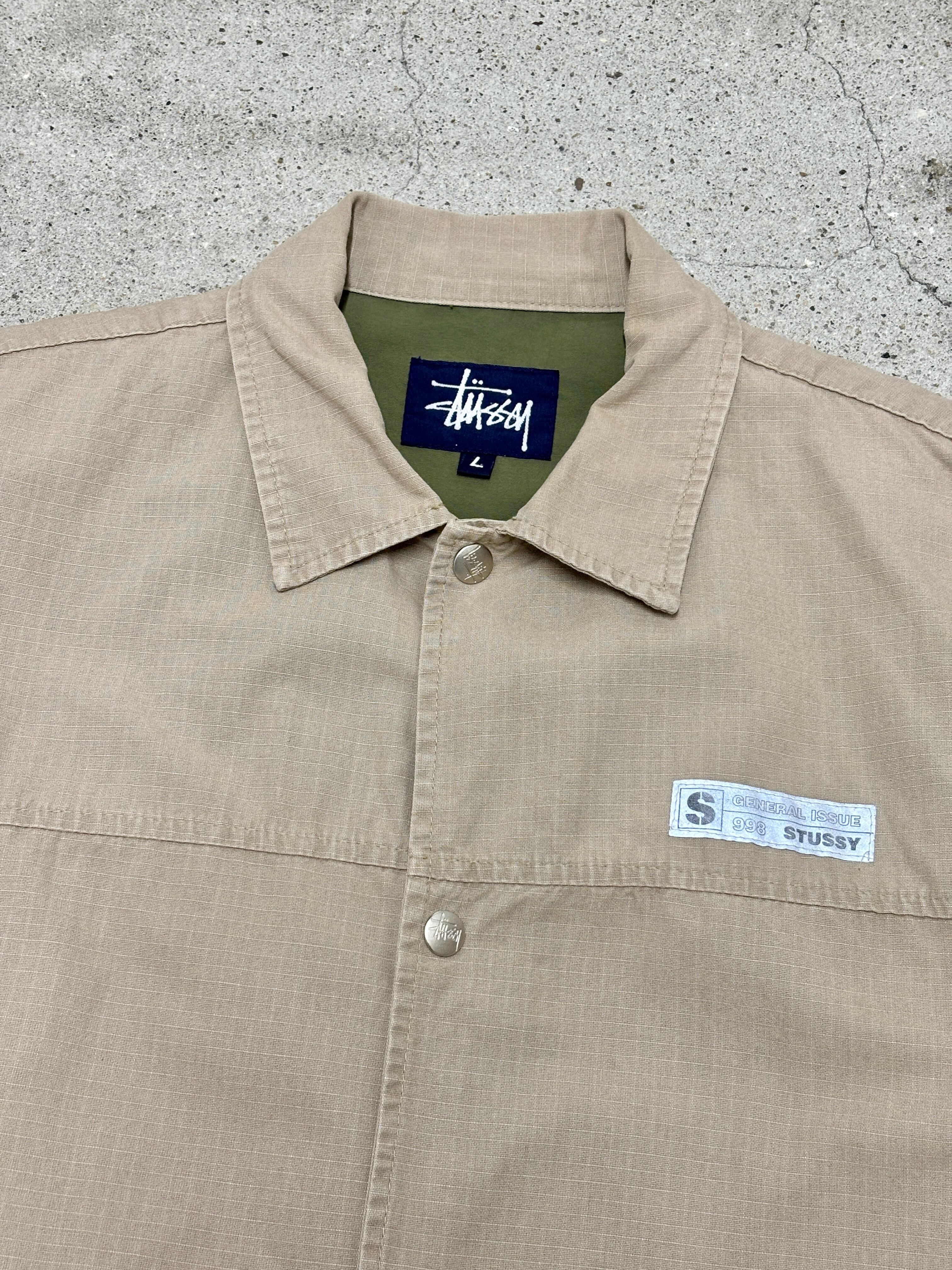 90s OLD STUSSY/Coach Jacket/USA製/紺タグ/L/コーチジャケット/ワークジャケット/GENERAL ISSUE/ベージュ/ステューシー/オ-ルドステューシー