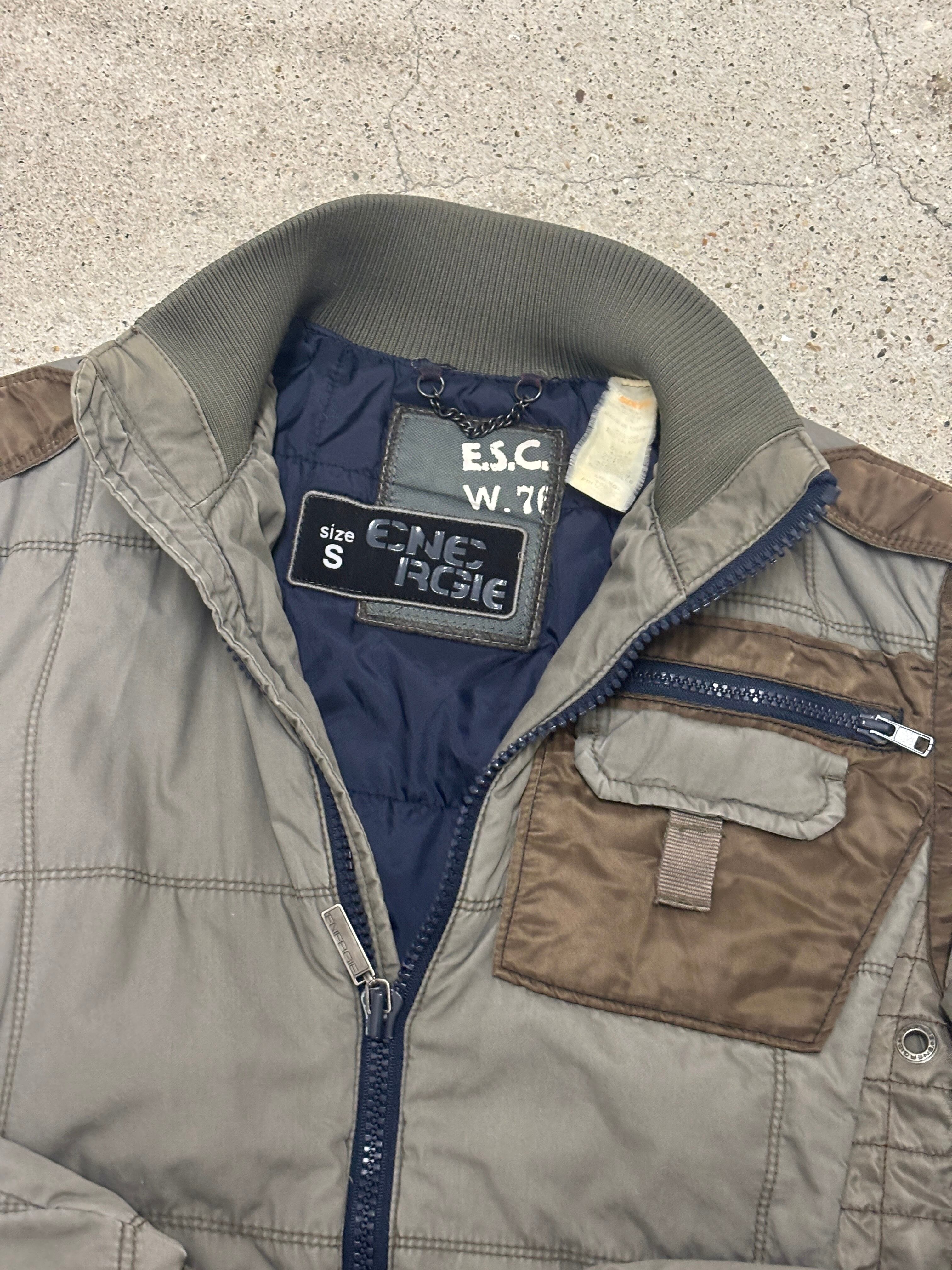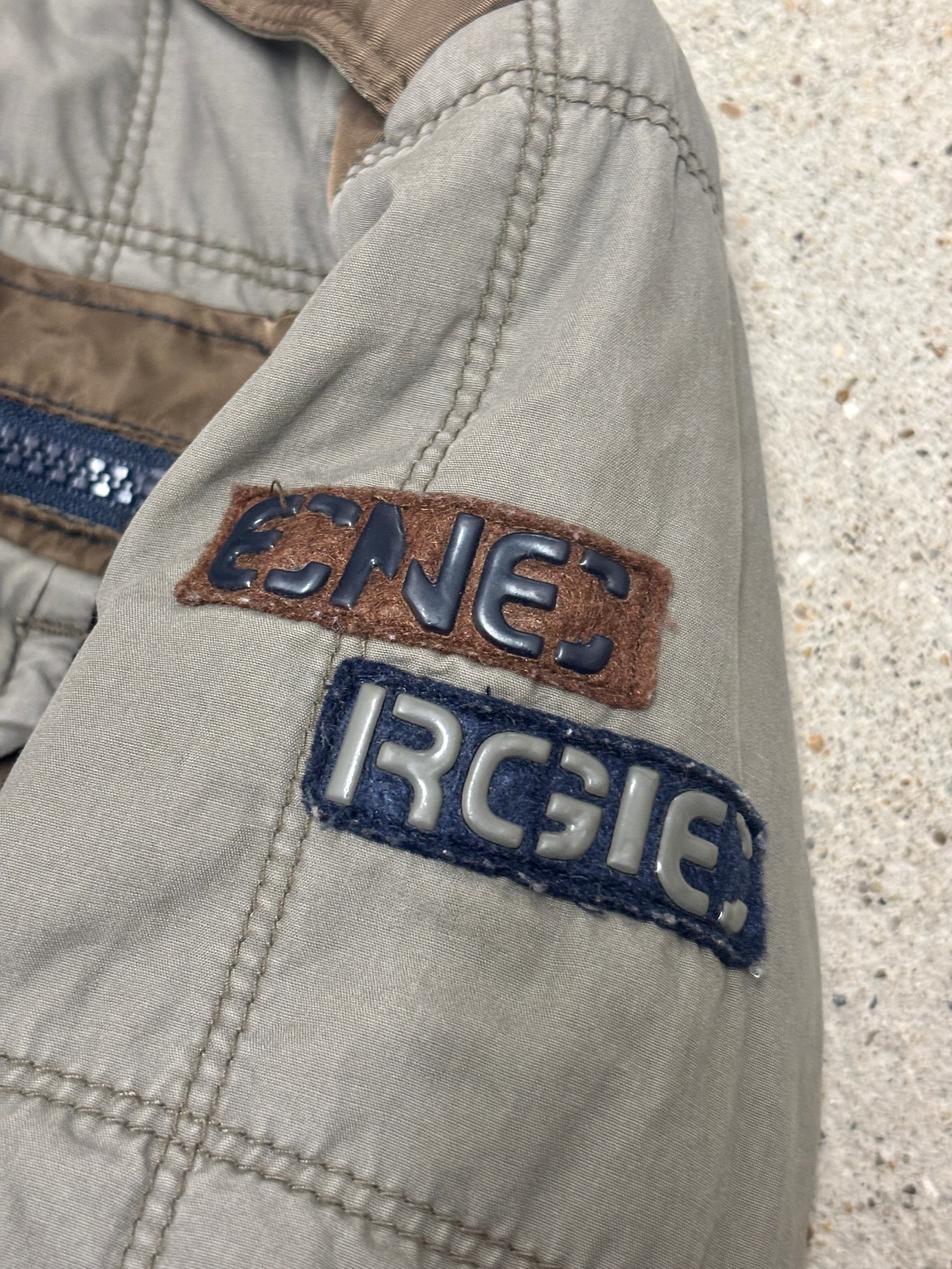 00s ENERGIE/Military Jacket/S/ミリタリ-ジャケット/ナイロンジャケット/カ-キ/ロゴワッペン/エナジ-/インポ-トブランド/ア-カイブ/古着