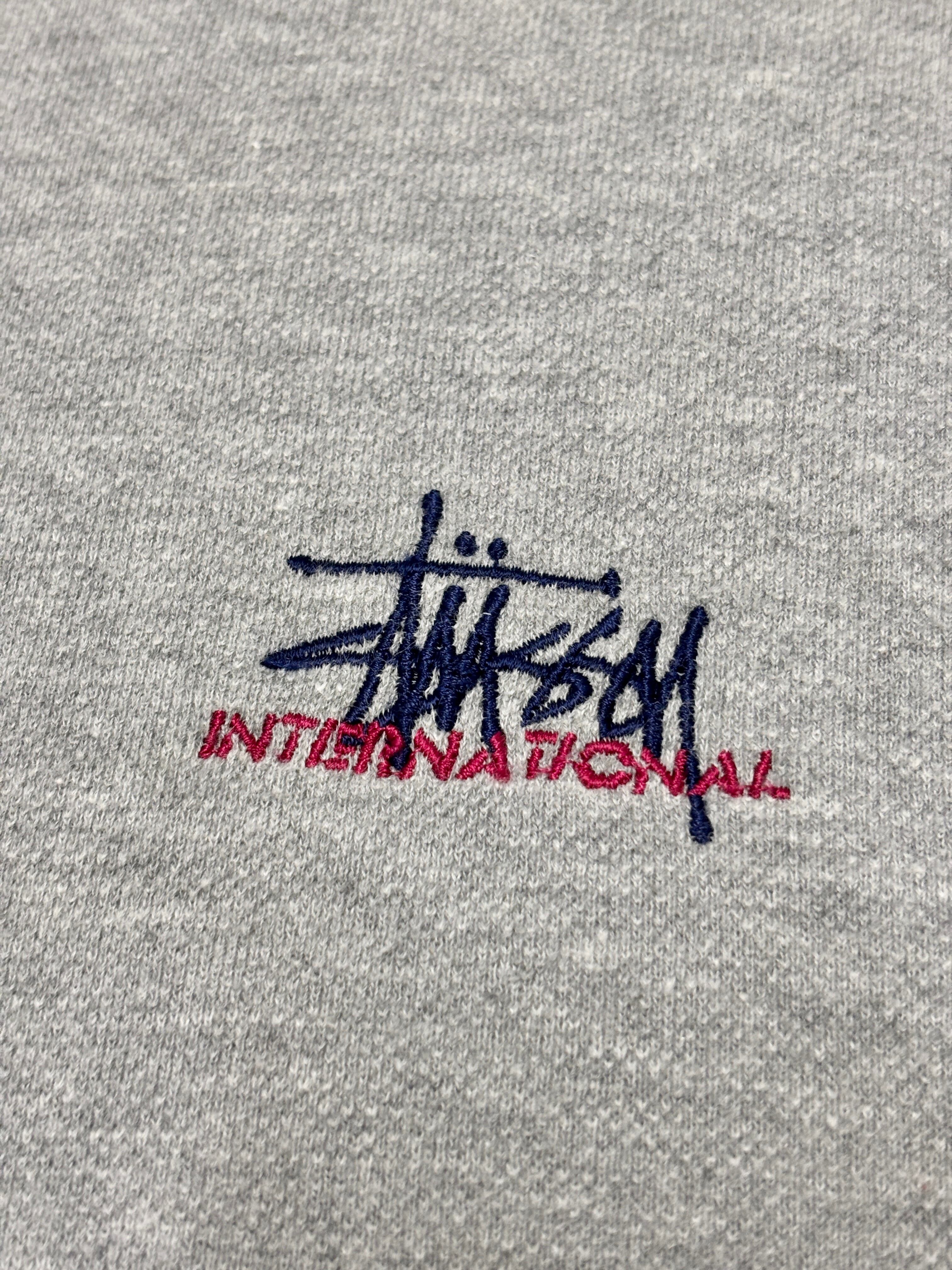 90~00s OLD STUSSY/Logo embroidery Sweat/USA製/紺タグ/L/刺繍ロゴスウェット/INTERNATIONAL/ストックロゴ/グレ-/ステューシー/オ-ルドステューシー