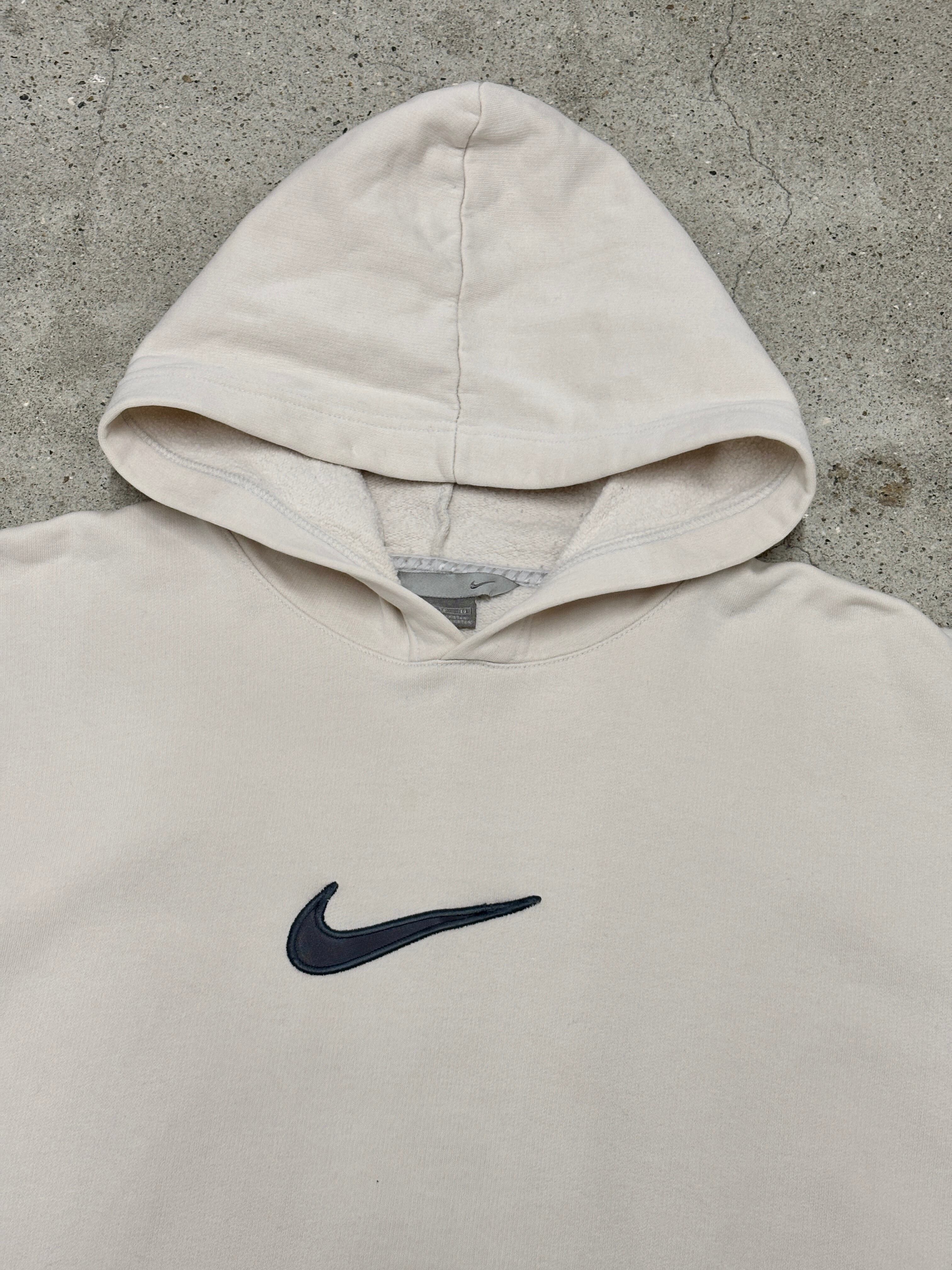 00s NIKE/Swoosh Logo/XL/スウォッシュロゴ/フ-ディ-/パ-カ-/刺繍ロゴ/クリ-ム/ナイキ/オールドナイキ/古着/ア-カイブ
