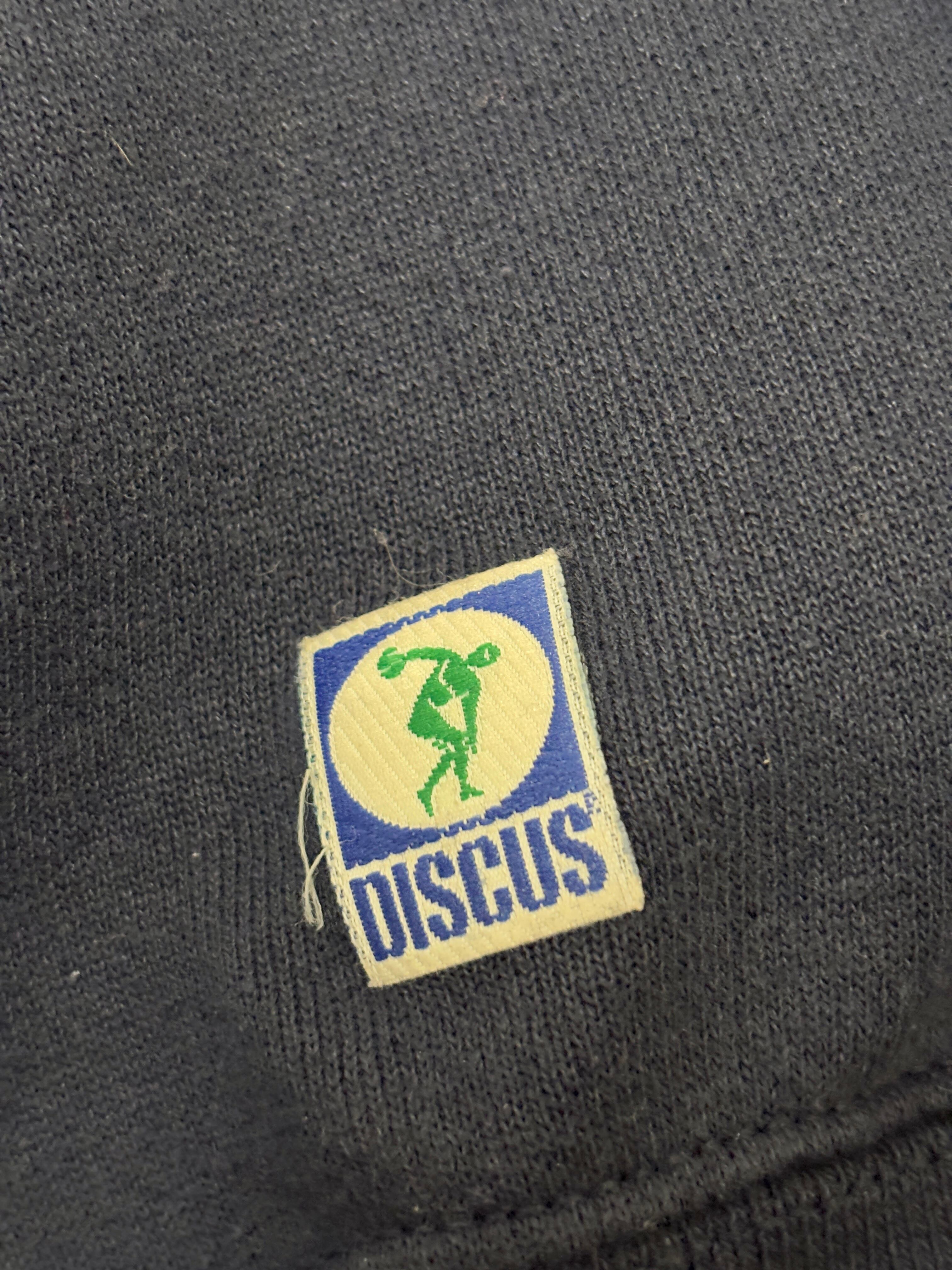 90s alienworkshop/Logo print Sweat/USA製/L/DISCUSボディー/ロゴプリントスウェット/グレイ/ネイビ-/ラグラン/エイリアンワークショップ
