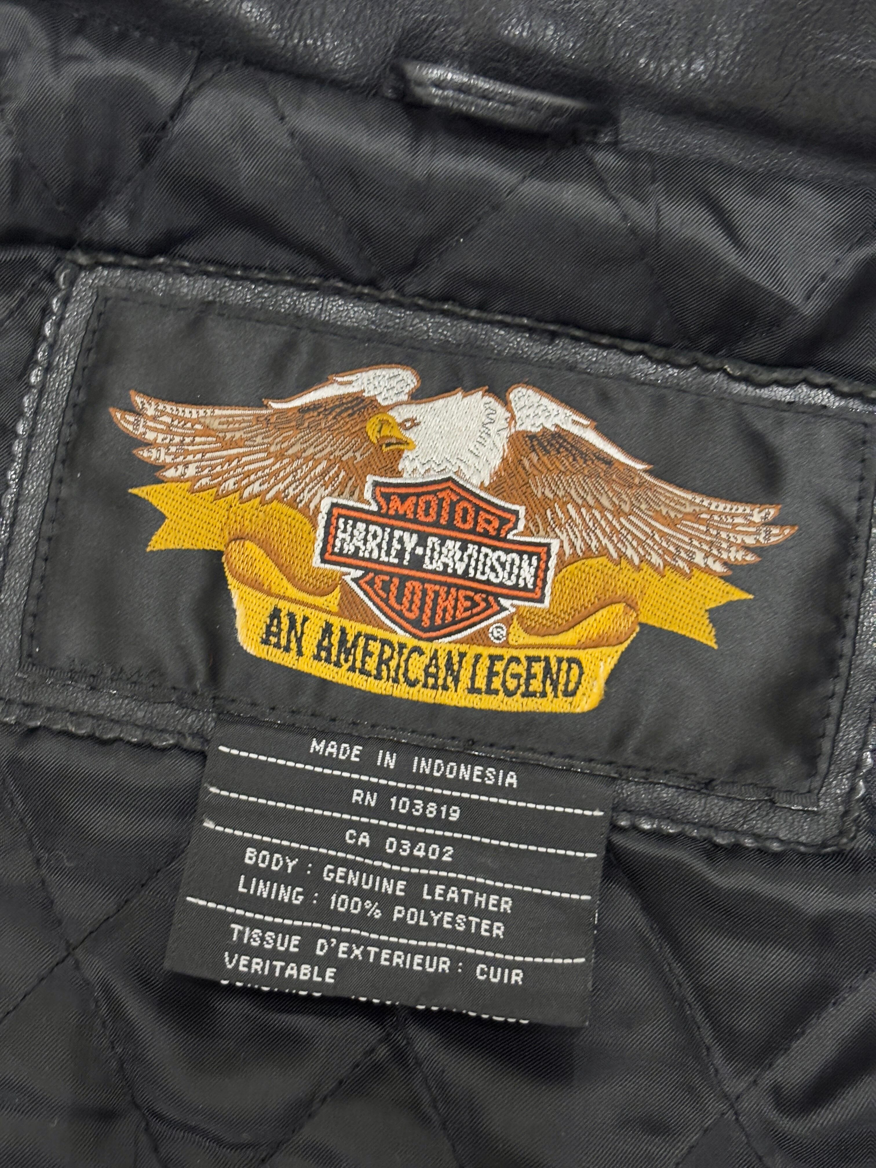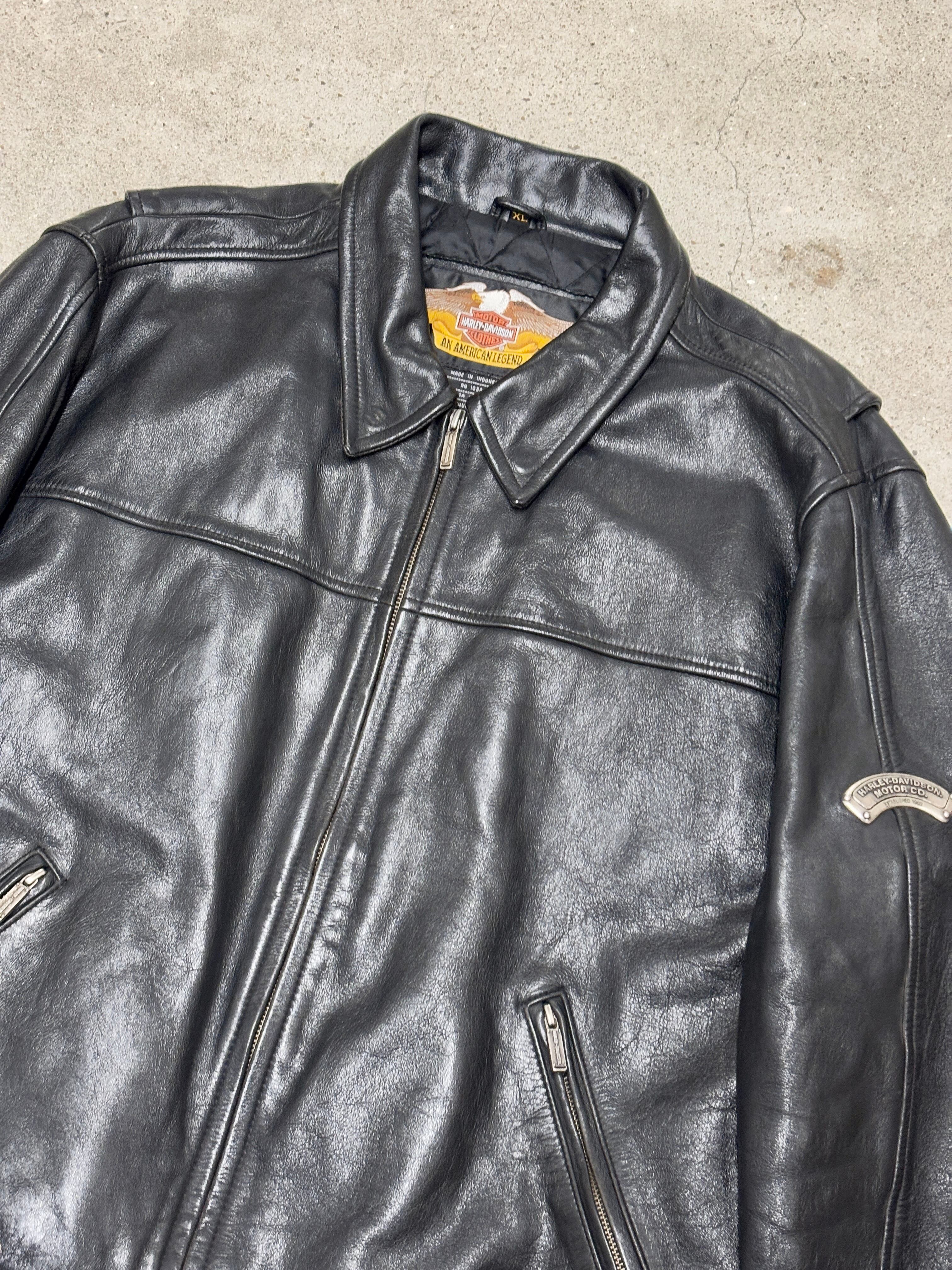 HARLEY DAVIDSON/Leather Jacket/XL/レザ-ジャケット/エンブレムデザイン/メタルプレ-ト/本革/ブラック/ハーレーダビッドソン/バイカ-/バイク/アメカジ/古着