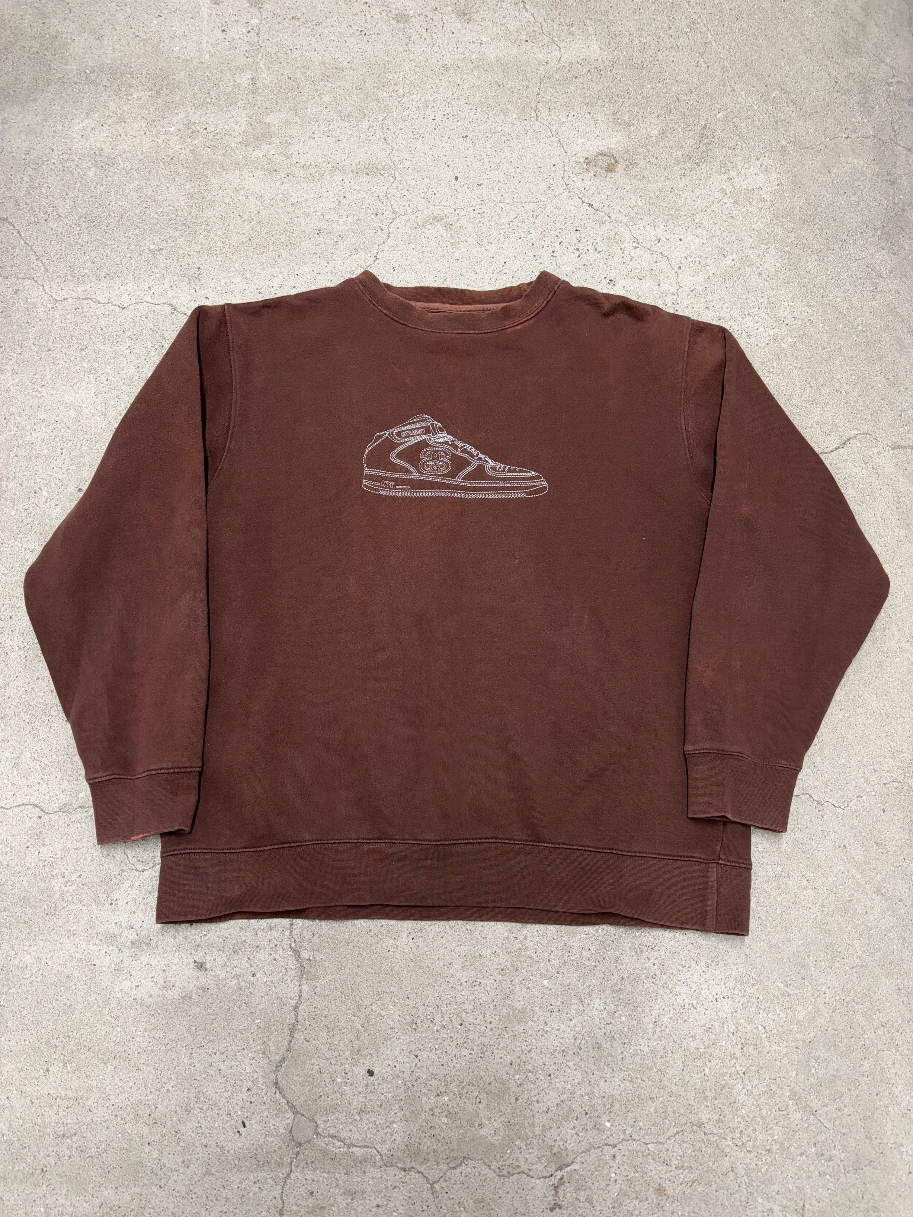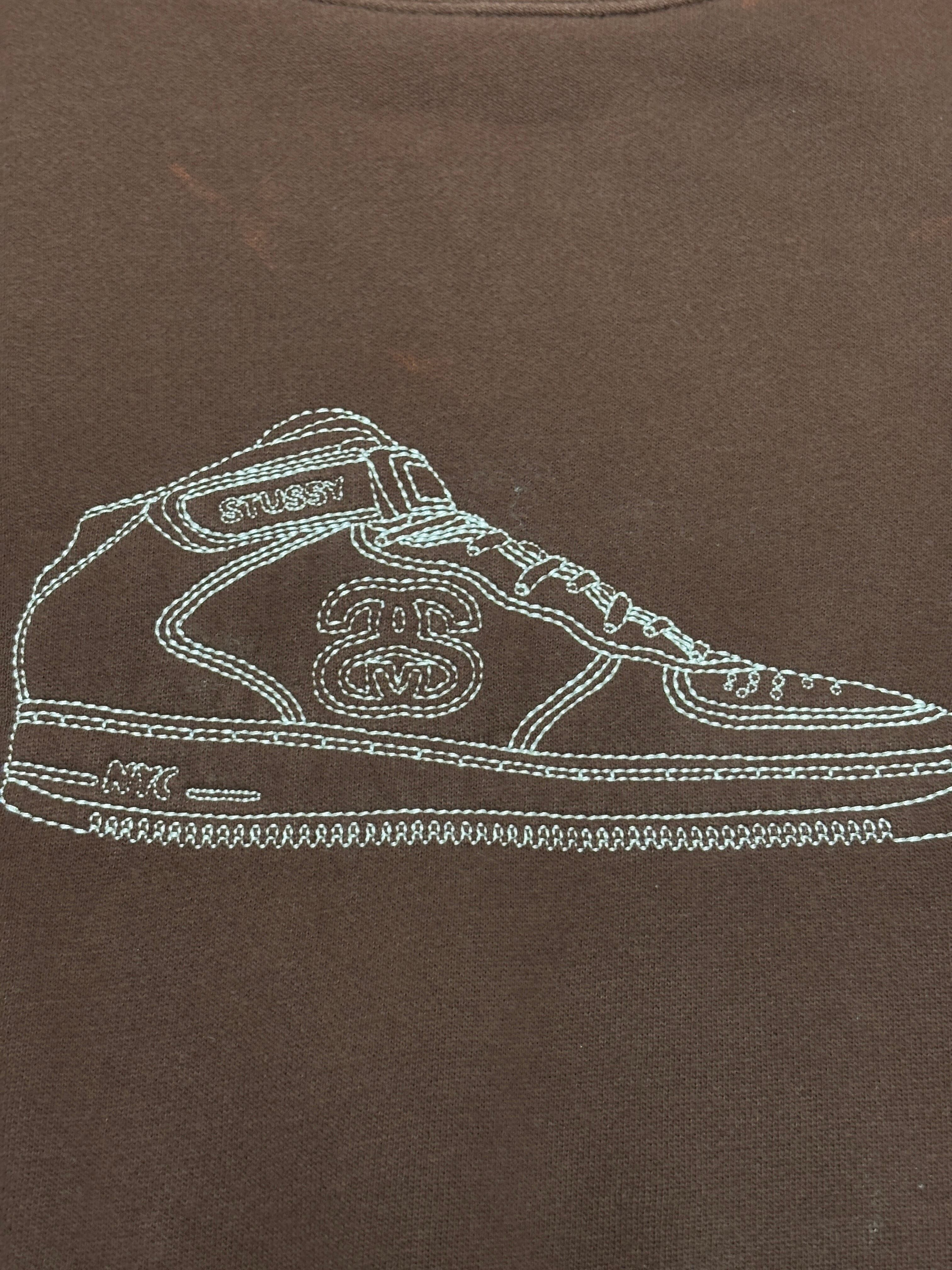 00s OLD STUSSY/AF1 parody design Sweat/紺タグ/S/エアフォ-ス1パロディ-デザイン/スウェット/刺繍/ブラウン/ステューシー/オールドステューシー/古着/ア-カイブ