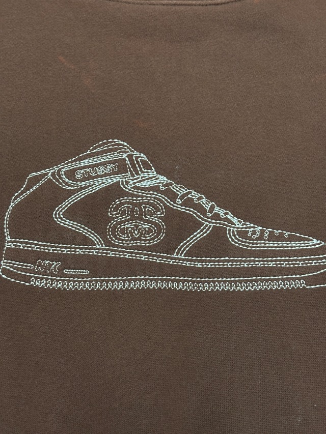 00s OLD STUSSY/AF1 parody design Sweat/紺タグ/S/エアフォ-ス1パロディ-デザイン/スウェット/刺繍/ブラウン/ステューシー/オールドステューシー