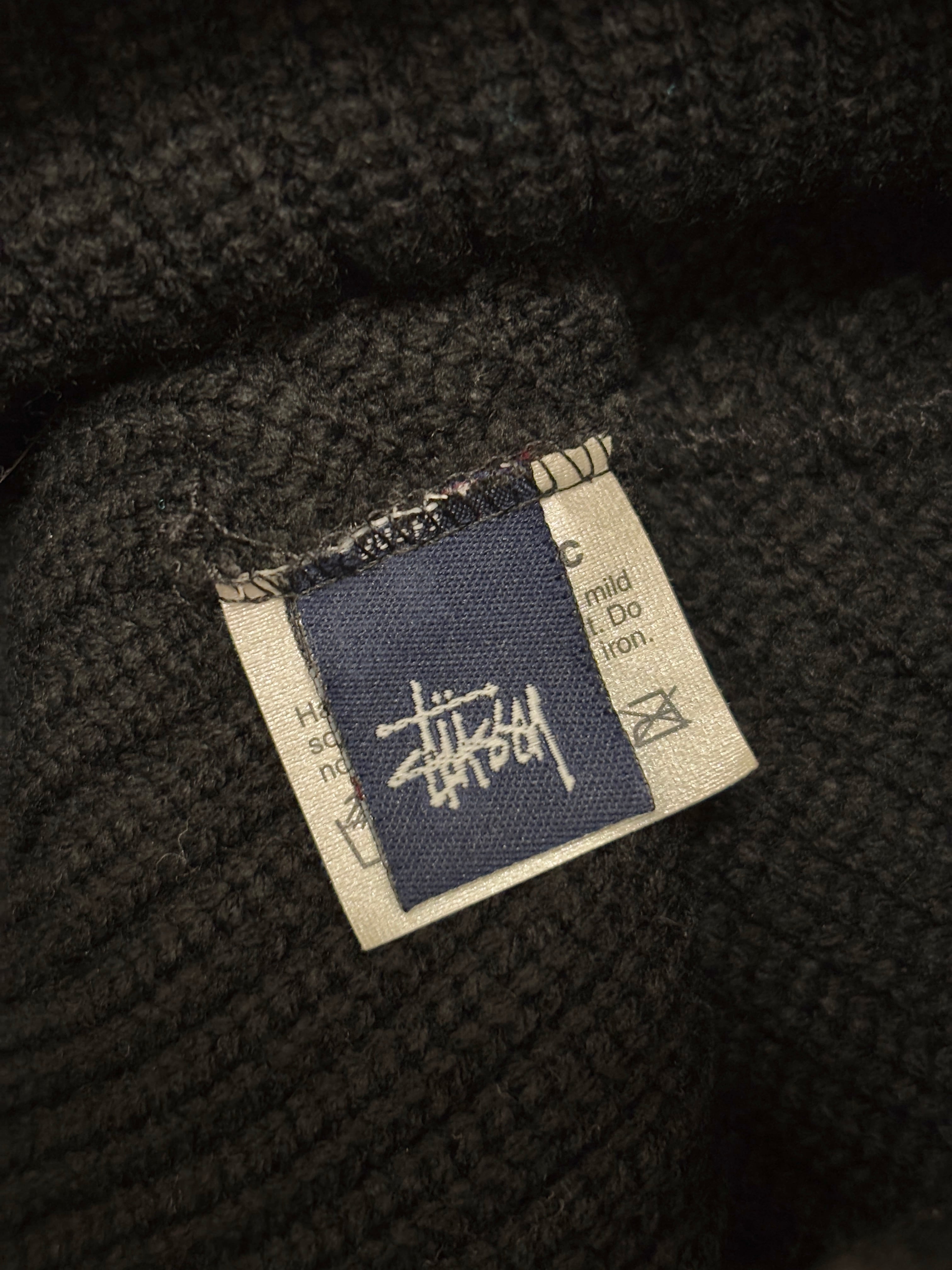 90~00s OLD STUSSY/Border Beanie/USA製/Free/ボーダー/ビーニー/ストックロゴ/刺繍ロゴ/ネイビ-/ブル-/ステューシー/オールドステューシー