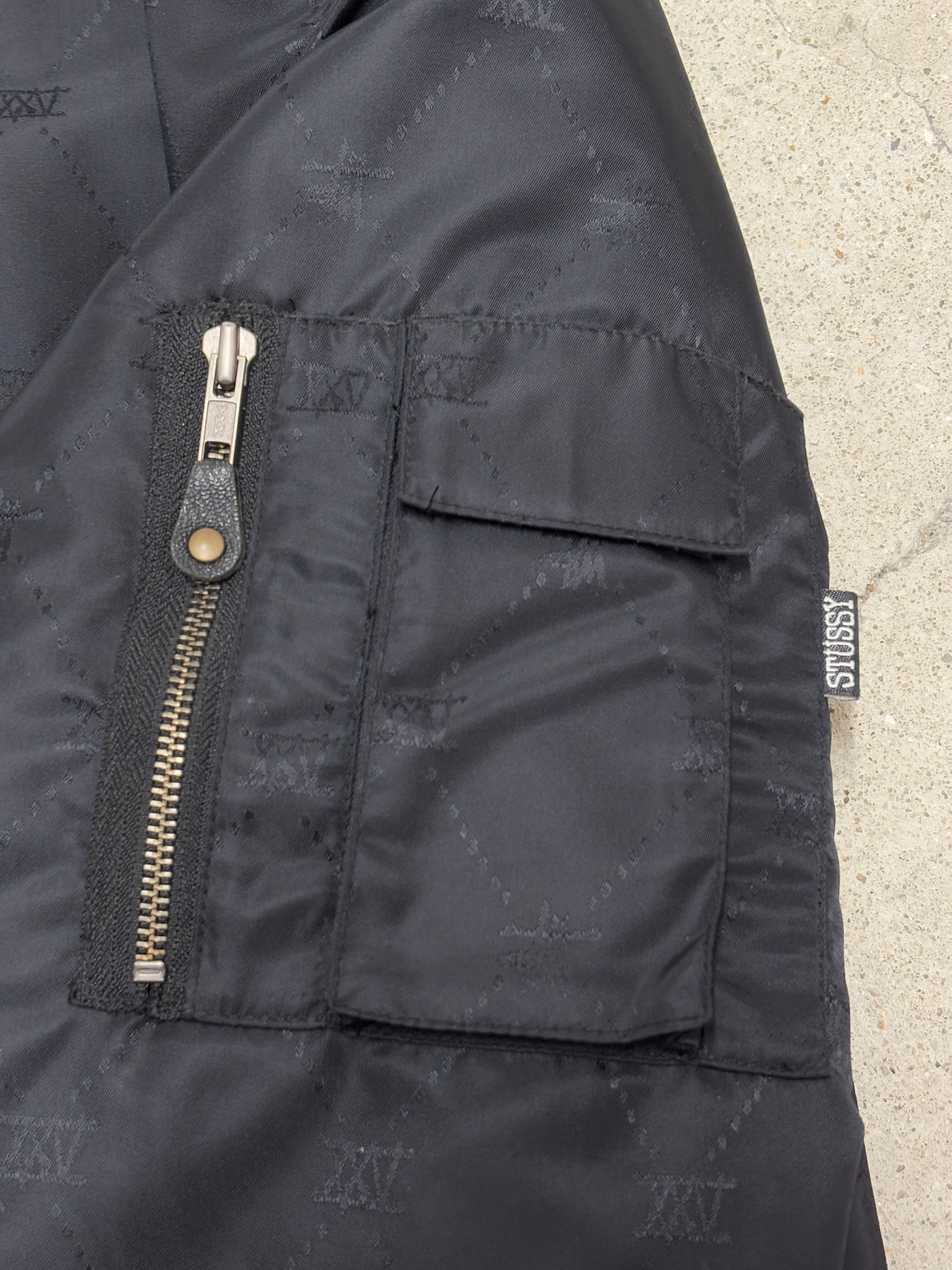 00~10s OLD STUSSY/25th Anniversary MA-1/XL/25周年記念/MA-1/フライトジャケット/XXV/ブラック/ミリタリ-ジャケット/ステューシー/オ-ルドステューシー