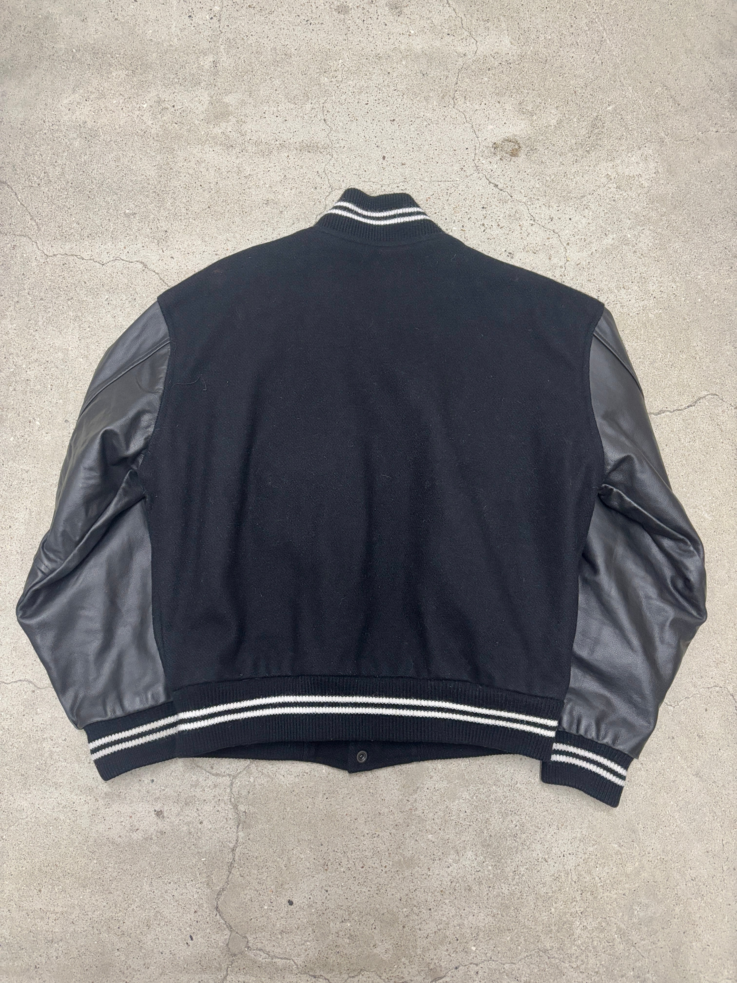 90~00s ERIC HAZE/Varsity Jacket/USA製/M/ロゴワッペン/スタジャン/ブラック/ウ-ル/レザ-/エリックヘイズ