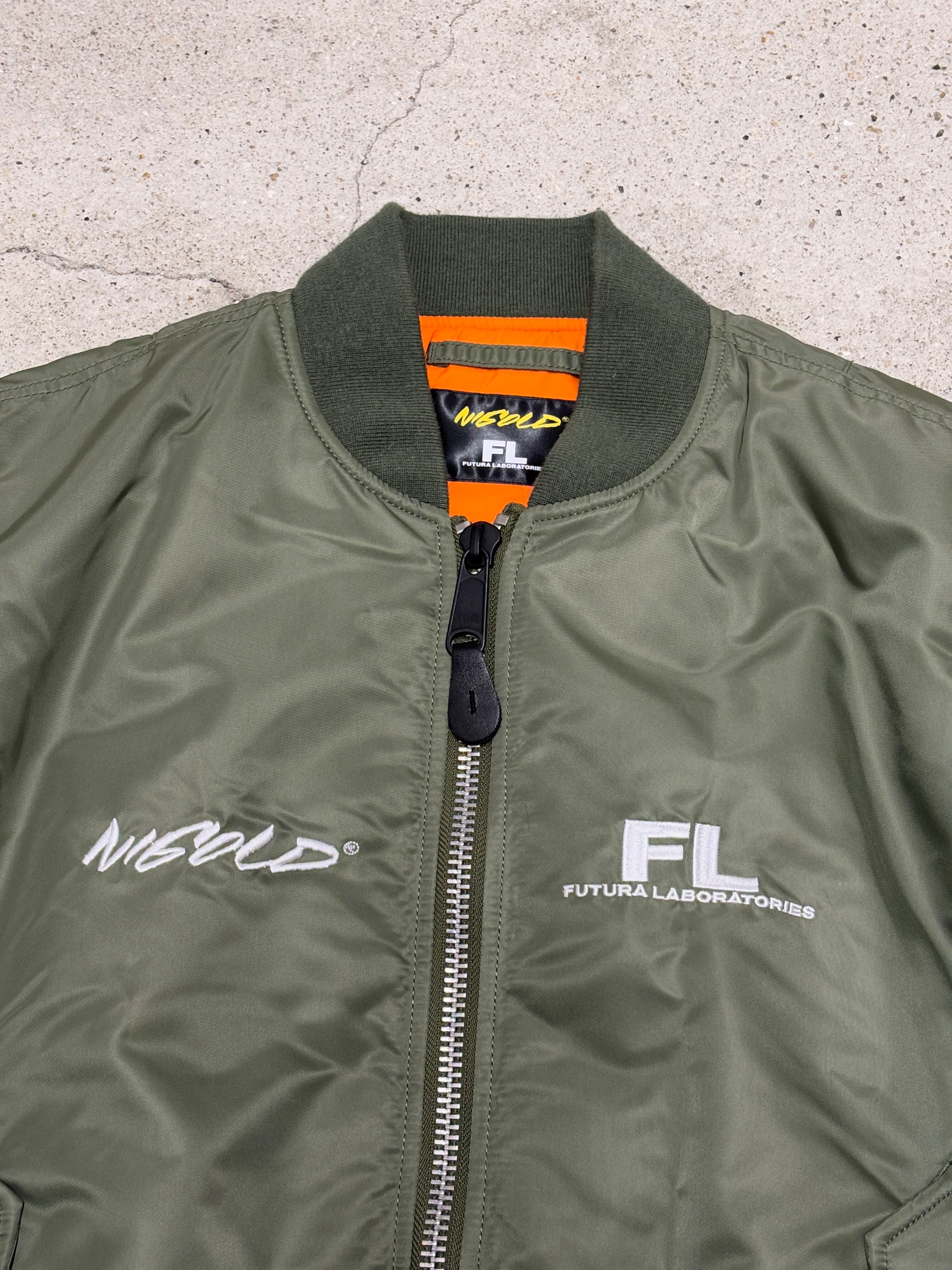 FUTURA Laboratories × NIGOLD/MA-1/Flight Jacket/M/刺繍ロゴ/フライトジャケット/ボンバ-ジャケット/カ-キ/限定アイテム/フューチュラ
