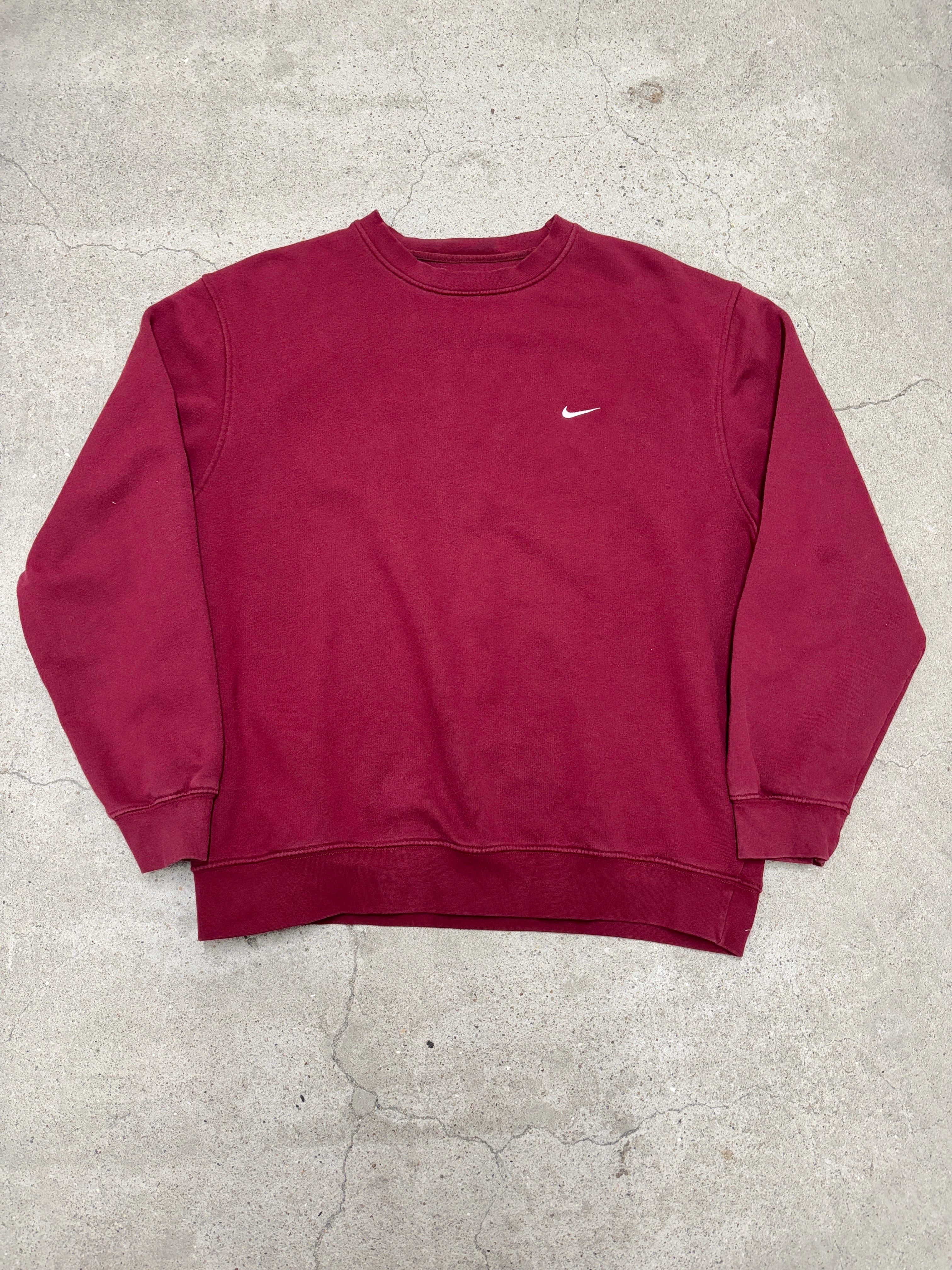 00s Euro NIKE/Swoosh Logo Sweat/Turkey製/L/スウォッシュロゴスウェット/刺繍ロゴ/バ-ガンディ-/ナイキ
