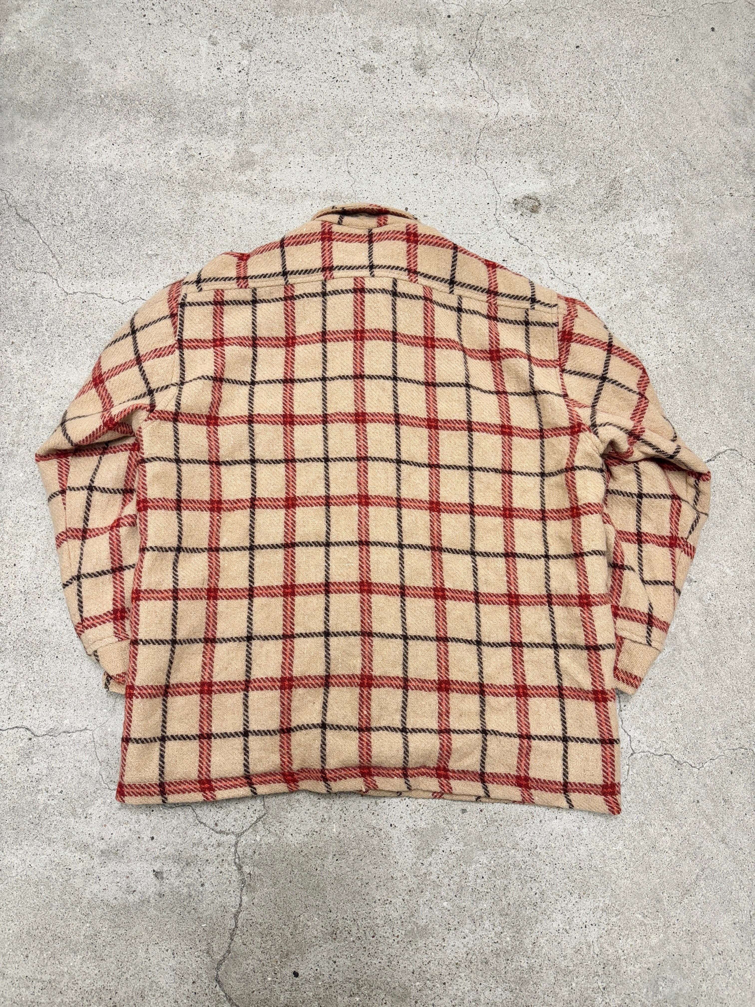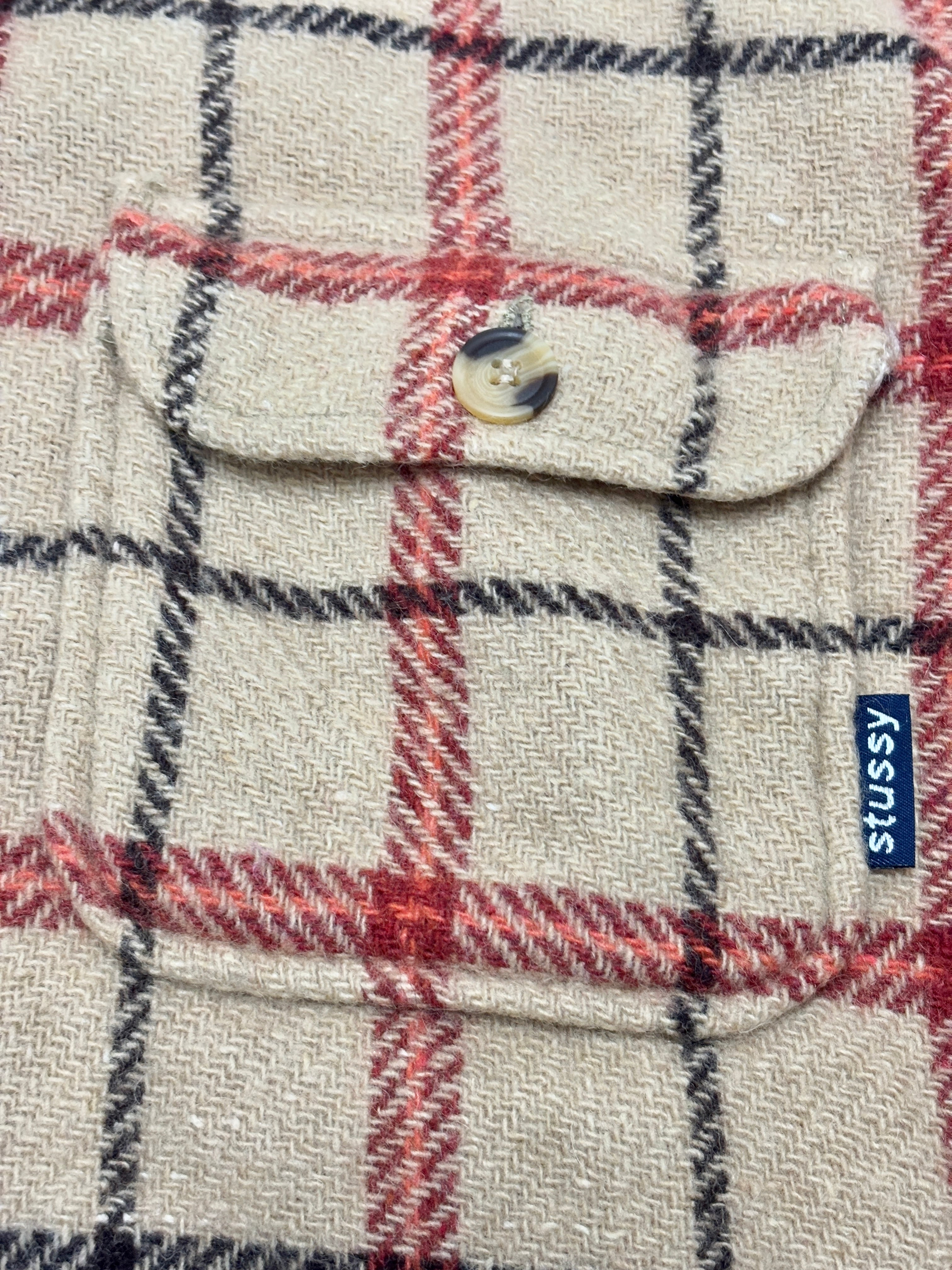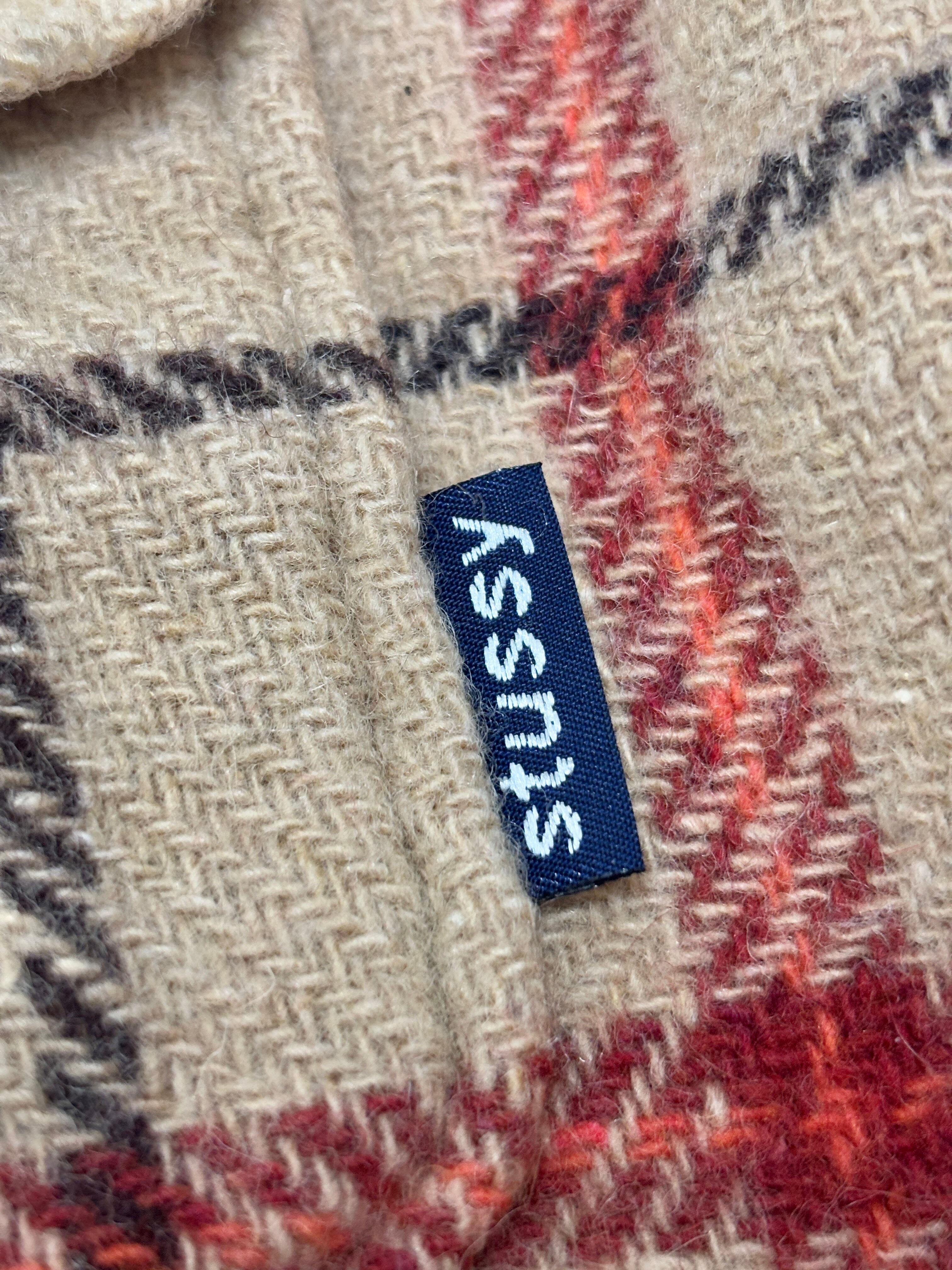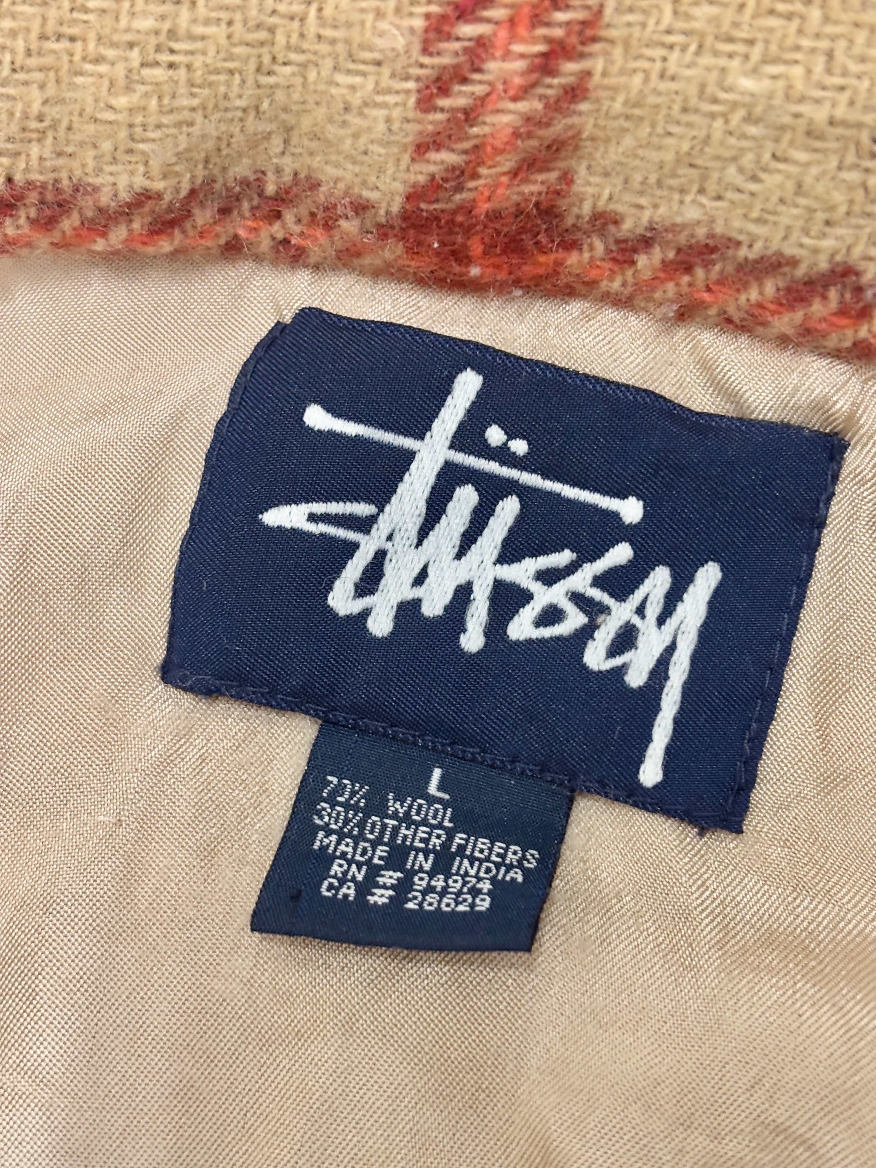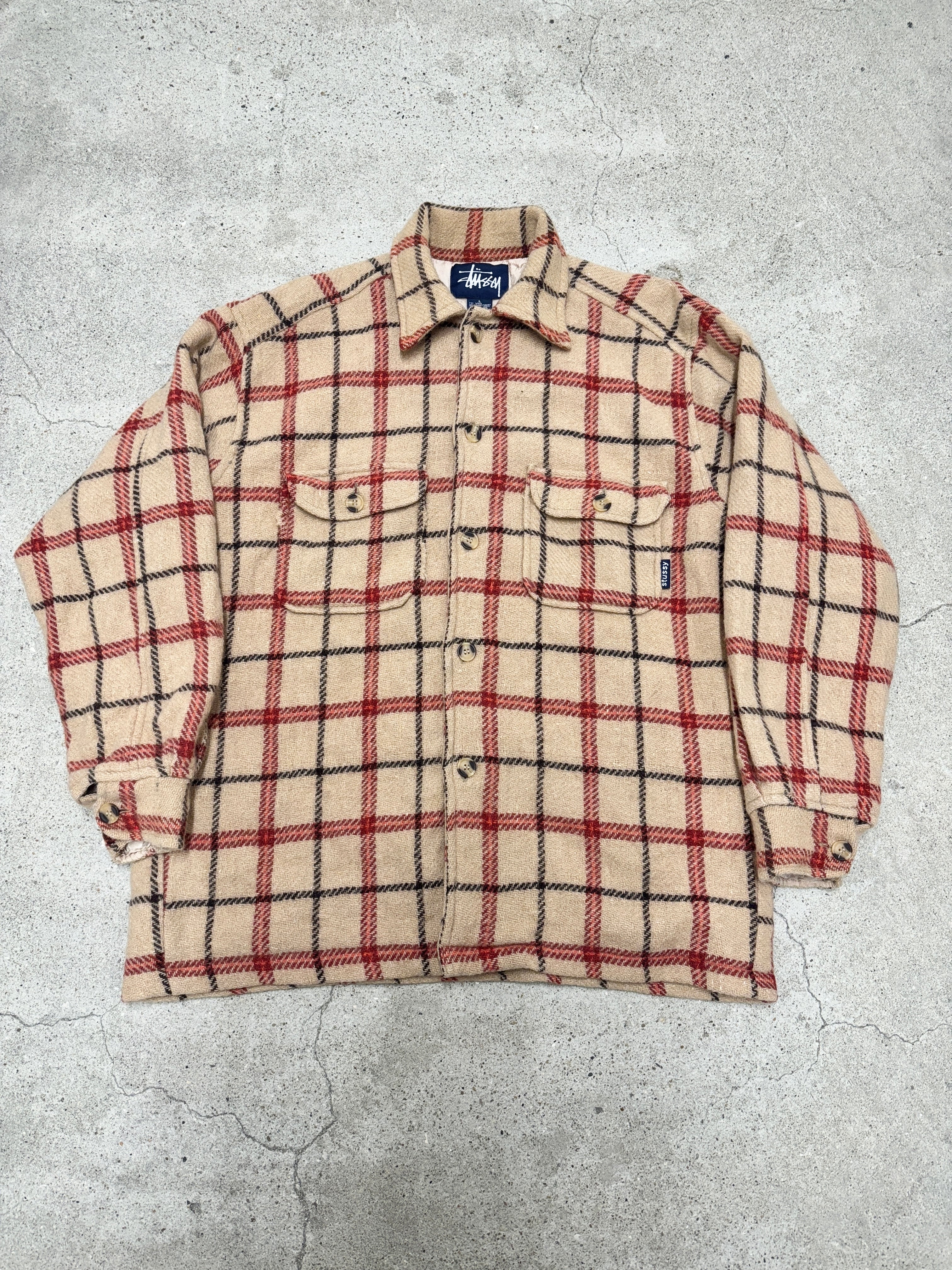 90~00s OLD STUSSY/Check Wool Shirt/紺タグ/L/チェック柄ネルシャツ/ウ-ルシャツ/ベ-ジュ/シャツジャケット/ステューシ-/オ-ルドステューシー