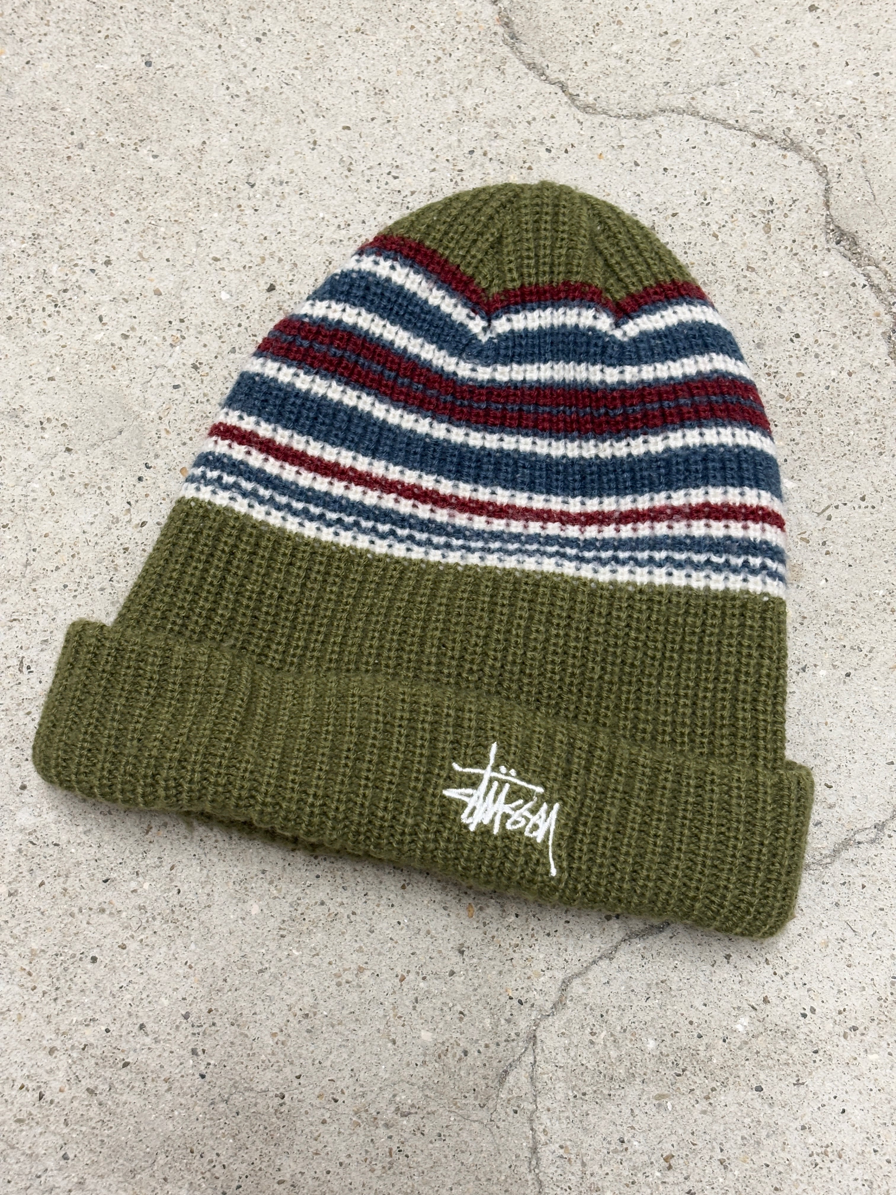 STUSSY/Stock Logo Beanie/Free/ストックロゴビ-ニ-/ニット帽/刺繍ロゴ/ボ-ダ-/カ-キ/ステューシー/帽子