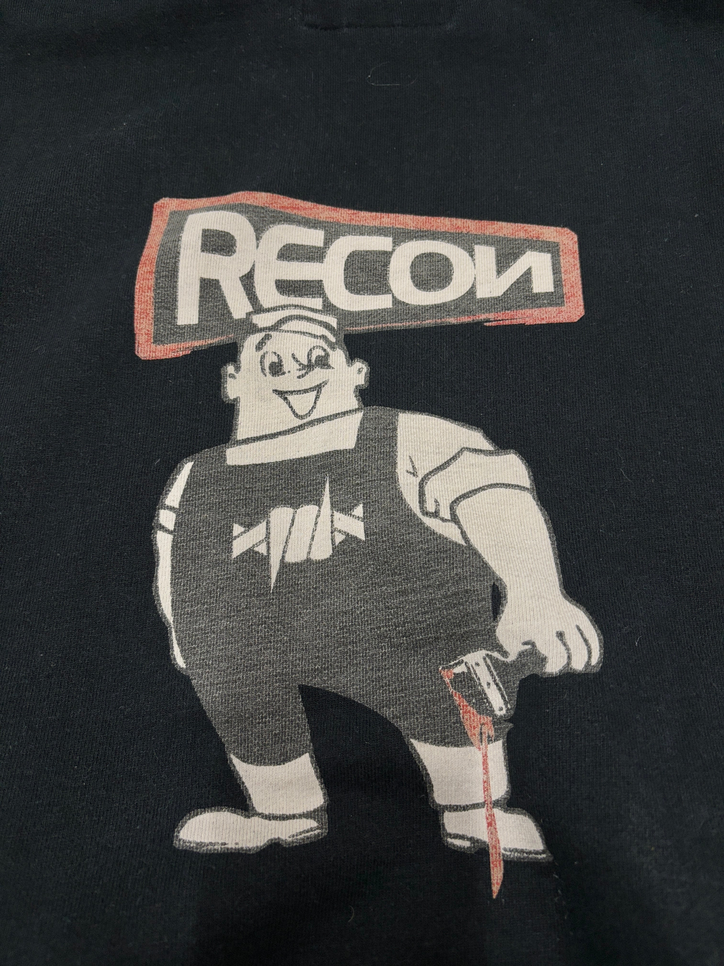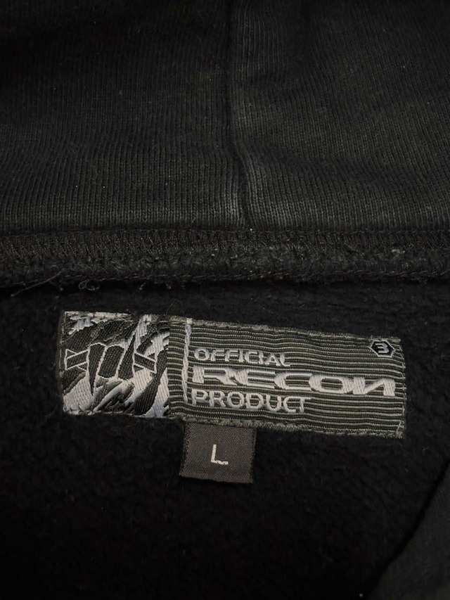 00s RECON/Logo print Hoodie/L/ロゴプリントフ-ディ-/キャラクタ-プリント/パ-カ-/有刺鉄線/ブラック/FUTURA/STASH/リ-コン/裏原/古着/ア―カイブ
