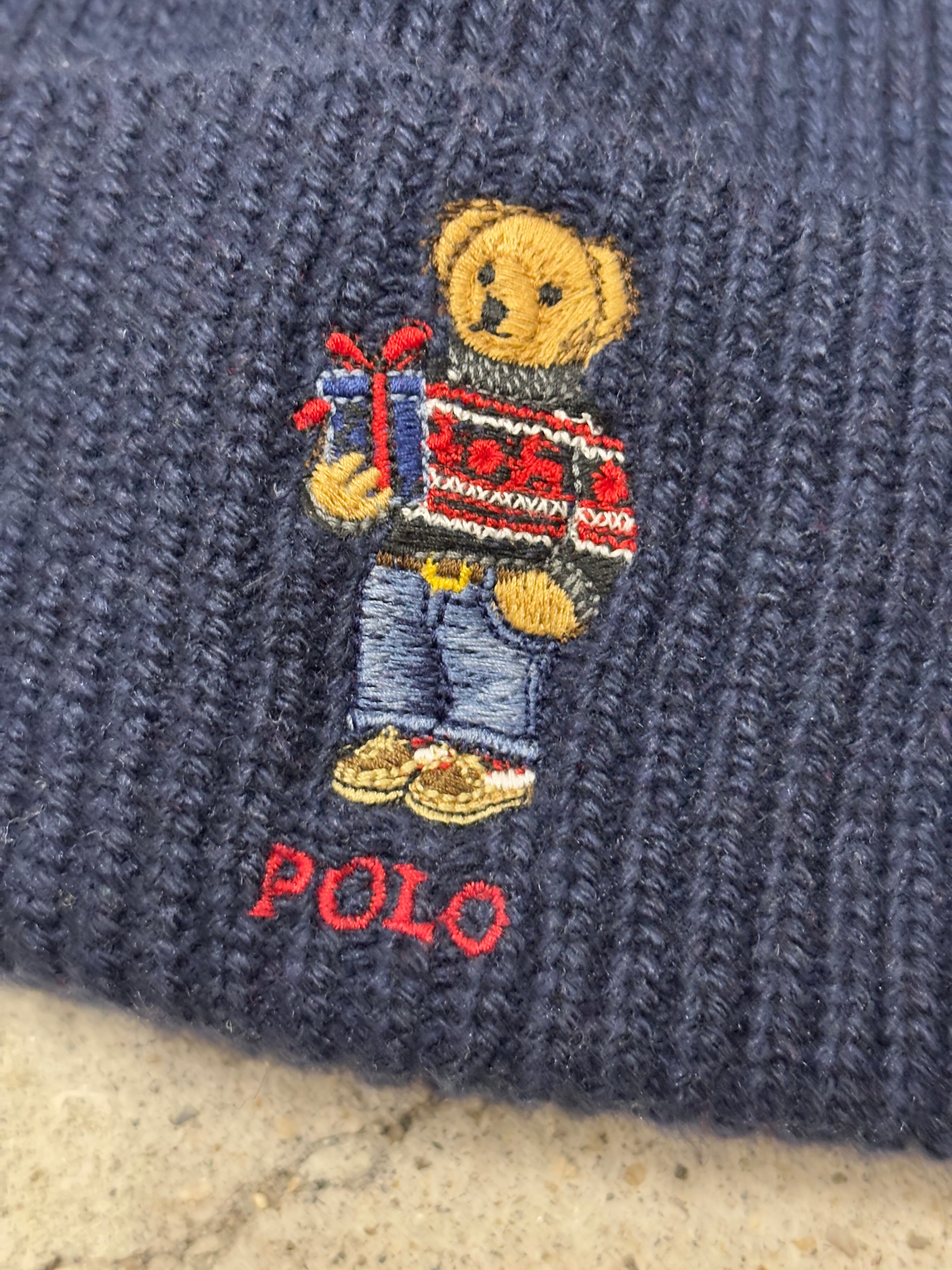 POLO RALPH LAUREN/Polo Bear Beanie/Free/ポロベア/ビ-ニ-/ニット帽/刺繍ロゴ/ネイビ-/ポロラルフローレン/アメカジ/帽子/中古