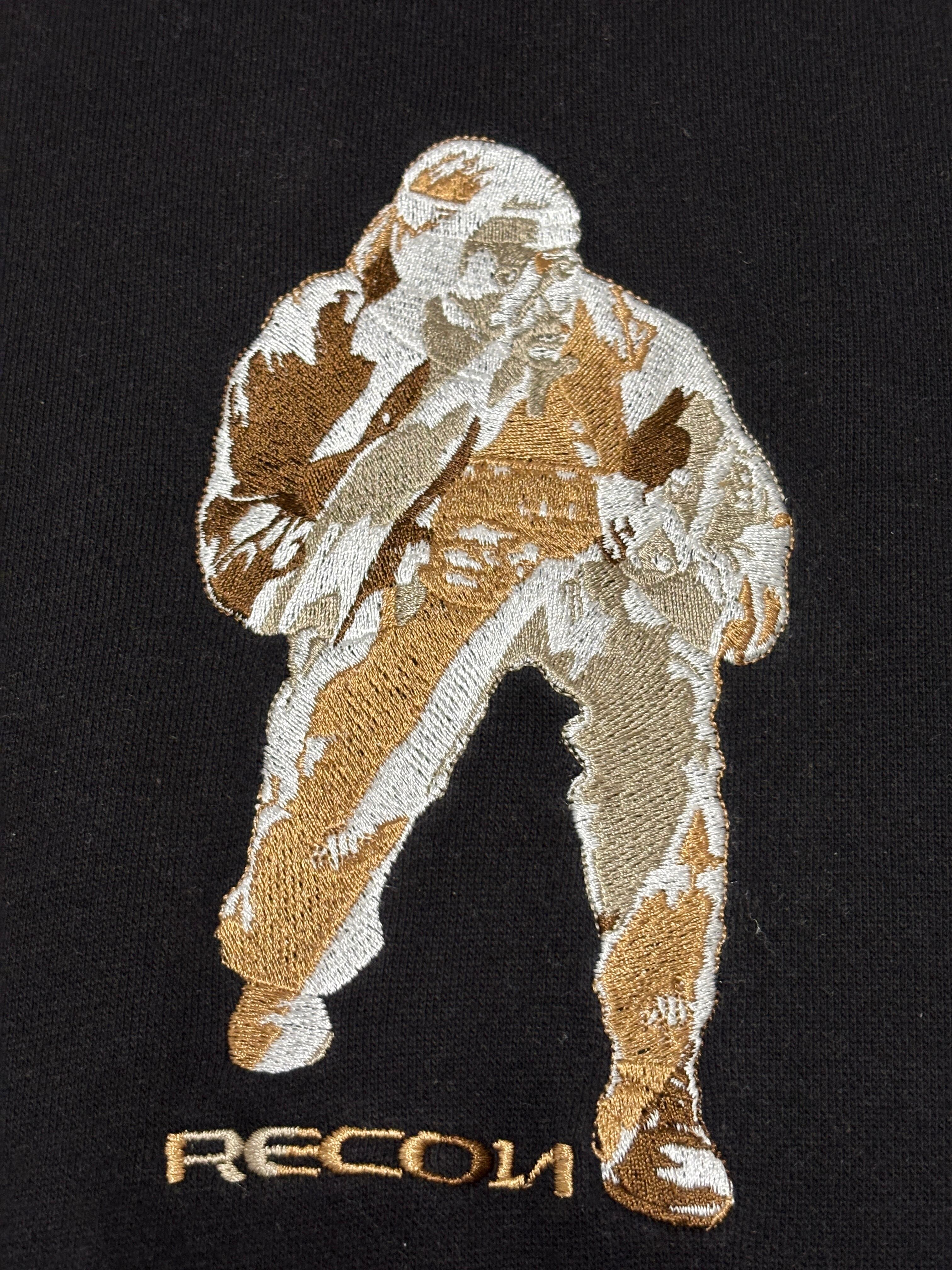 00s RECON/Soldier embroidery Hoodie/M/ソルジャー刺繍ロゴ/フーディ-/パ-カ-/ブラック/FUTURA/STASH/リーコン/裏原/古着/ア-カイブ