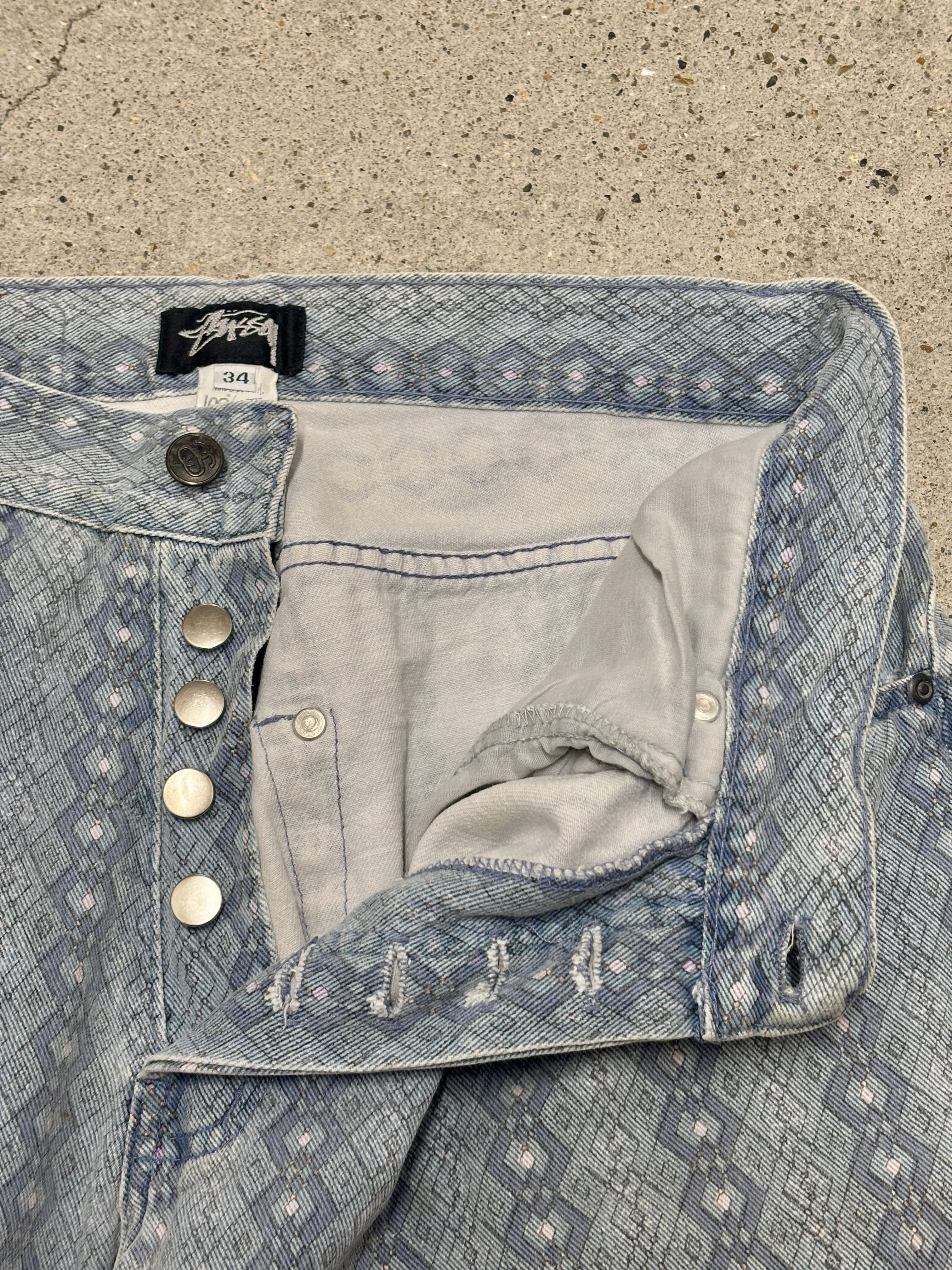 80s OLD STUSSY/Multi print pants/USA製/黒タグ/W34(W31相当)/総柄パンツ/ストレ-トデニム/ステューシー/オ-ルドステューシー