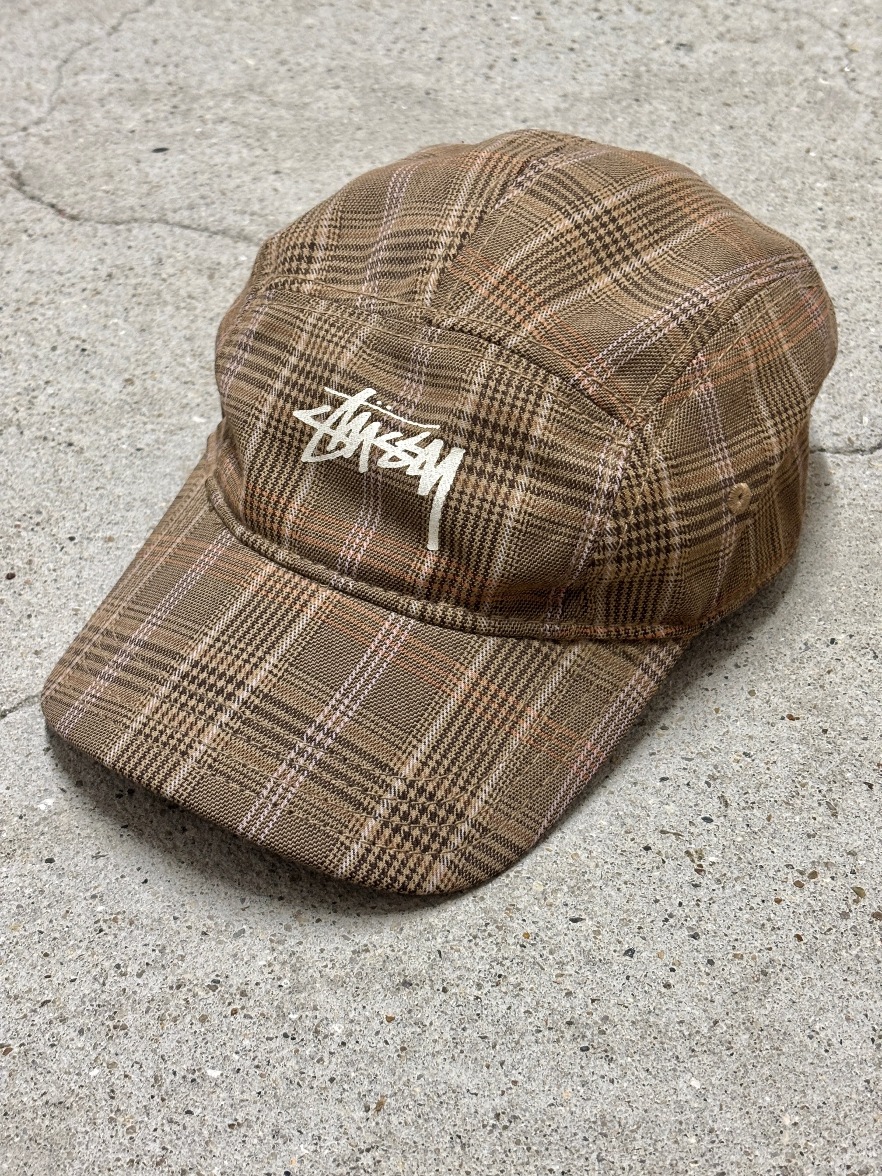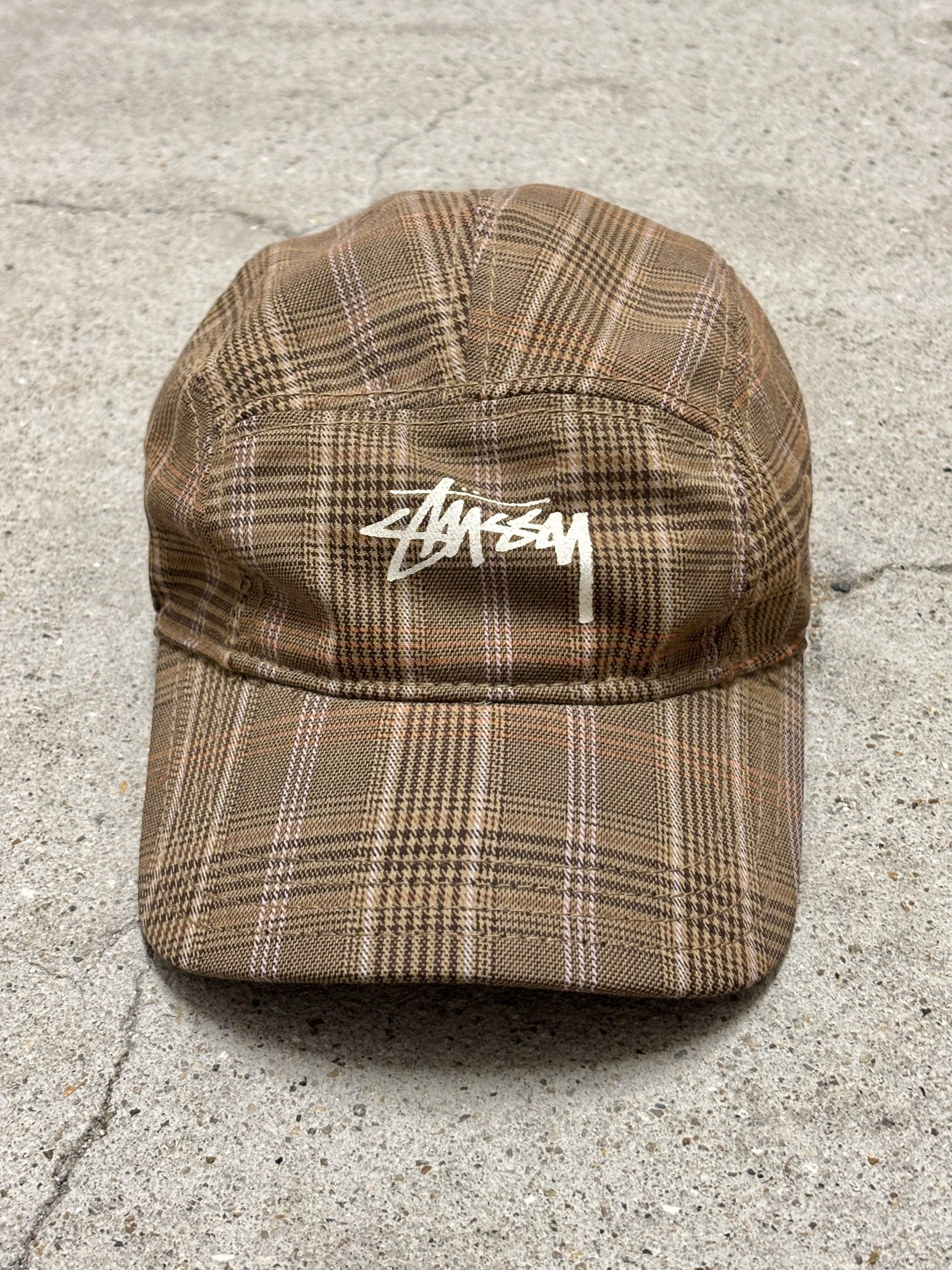 00s STUSSY/Camp cap/Free/キャンプキャップ/ストックロゴ/ロゴプリント/チェック柄/キャメル/ステューシー/オールドステューシー