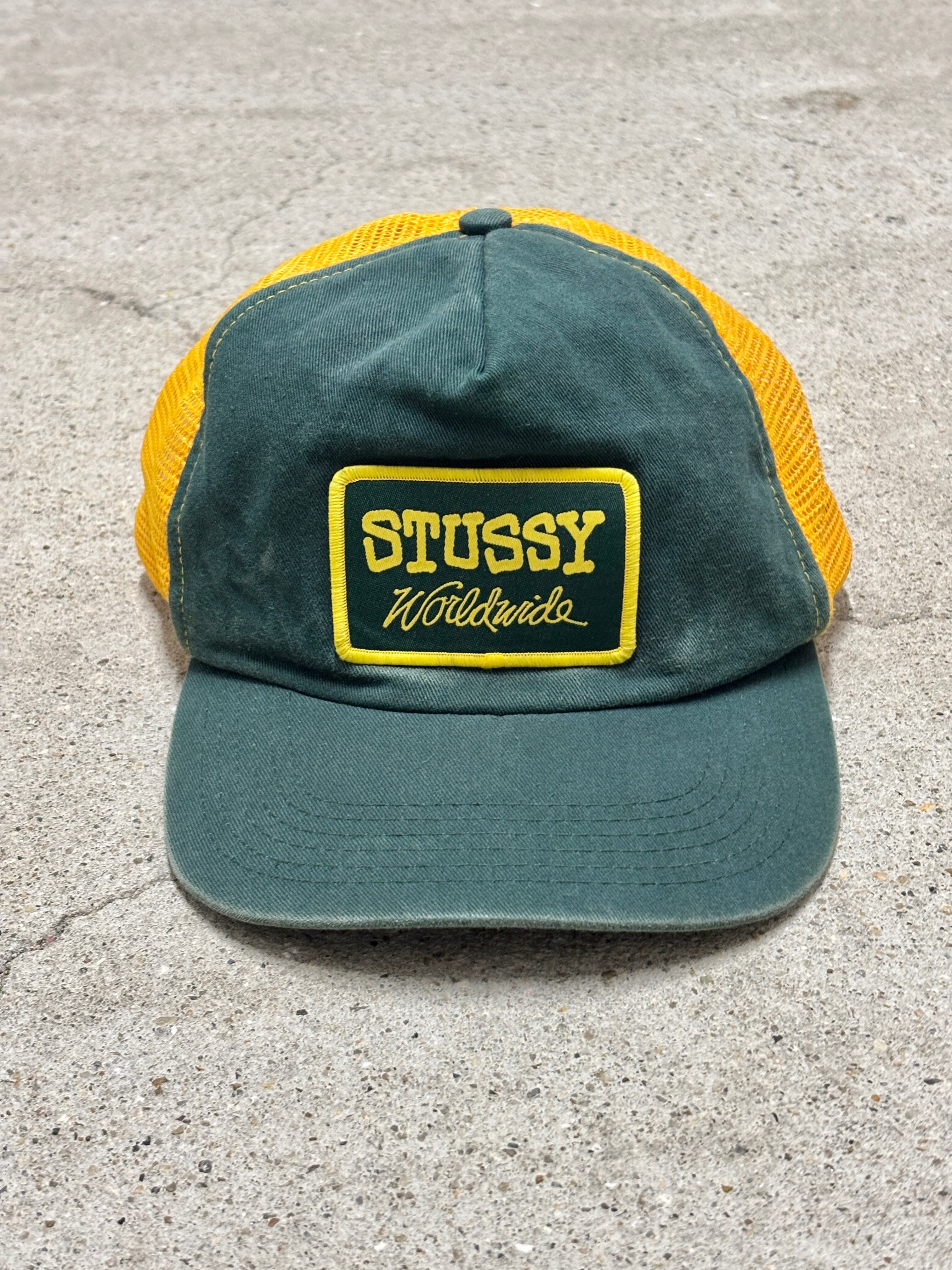 00s OLD STUSSY/Mesh Cap/USA製/メッシュキャップ/ロゴワッペン/カ-キ/イエロ-/ステューシー/オールドステューシー